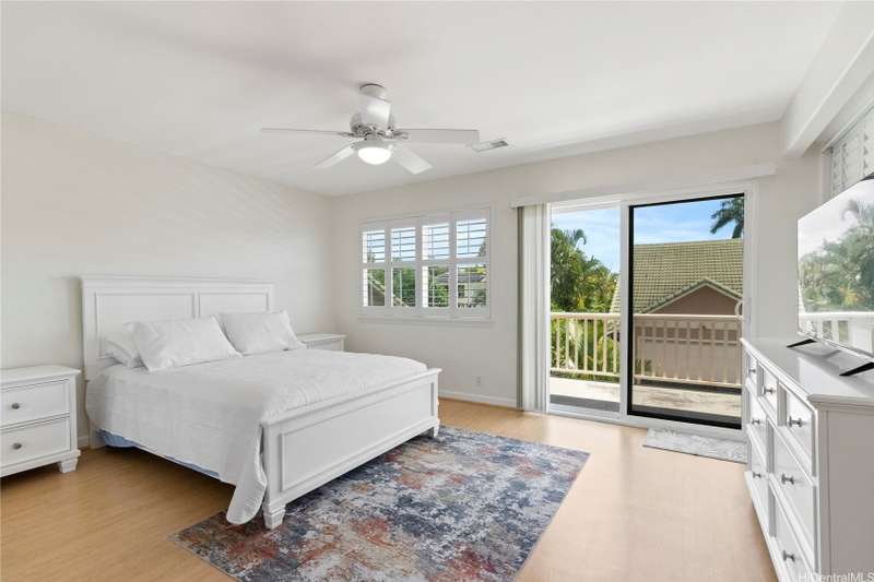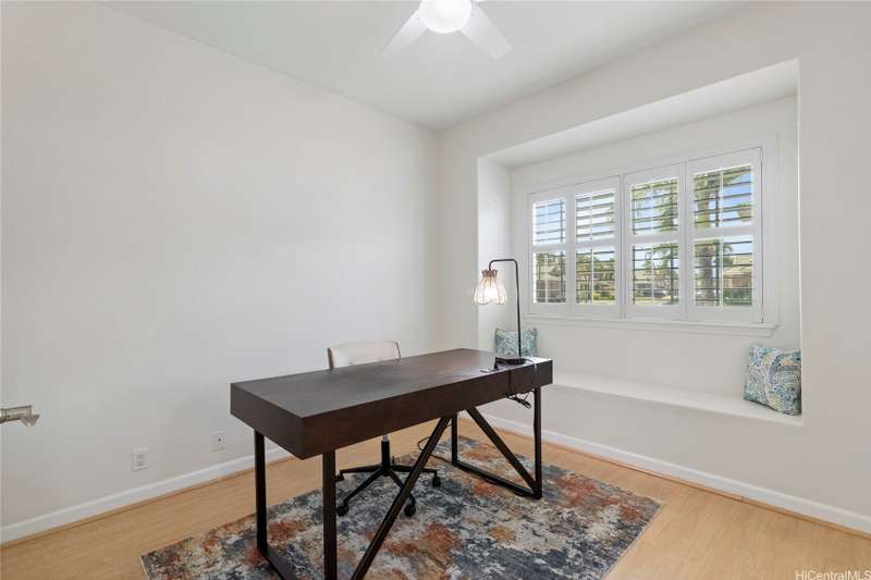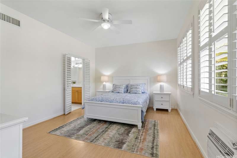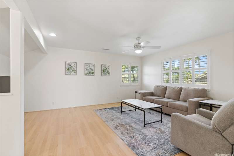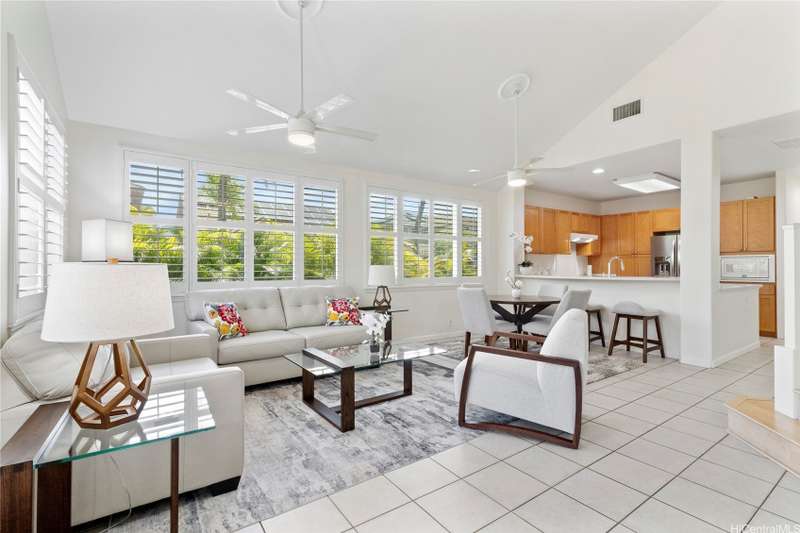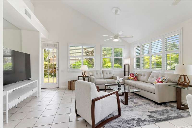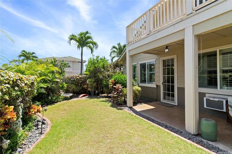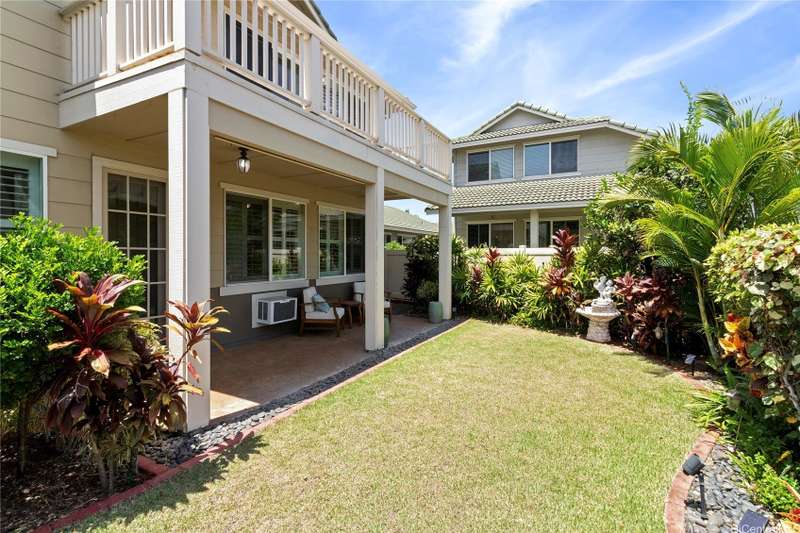 Welcome home to Huelani, a gated planned community of CPR Single Family Homes with Resort-like amenities. This 3 bedroom, 3 full bath home features 2 bedrooms on the first floor, one of them a large primary suite. The second floor contains a family room, full bath, and another spacious bedroom with a large lanai overlooking the lush private yard. Enjoy entertaining your guests in the comfortable open floor plan cooled by the central AC. Some of the features include Plantation Shutters, enclosed 2-car garage, landscaped front and back yards. The maintenance fees cover the costly upkeep of roof maintenance, exterior painting, front yard landscape maintenance, hurricane insurance, termite protection, water and sewer, and all of the amazing community amenities.