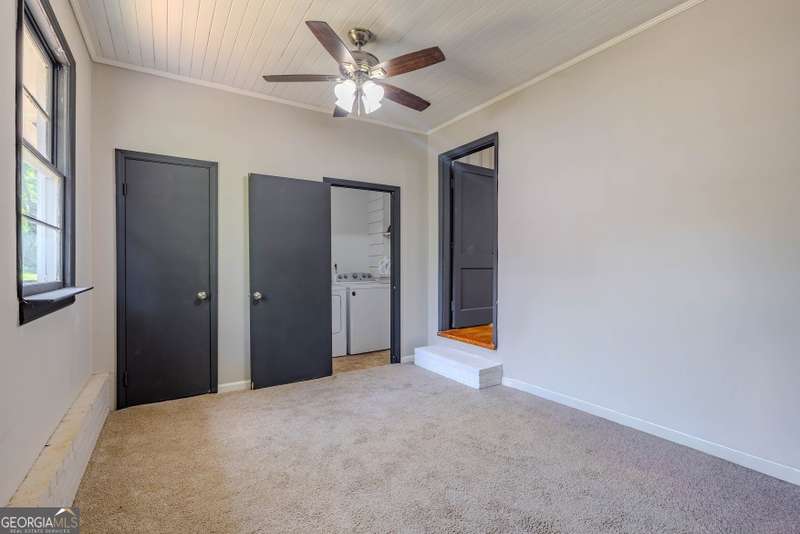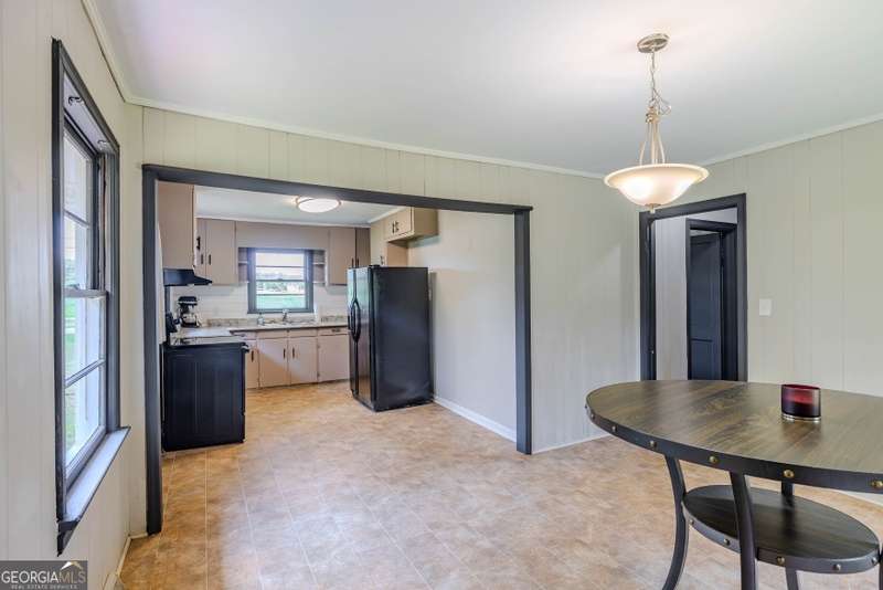 Charming 3-bedroom, 1-bath home conveniently located just minutes from downtown Rome. This cozy property features beautiful hardwood floors, wainscoting walls, and a bright kitchen complete with black appliances and a charming kitchenette area. A dedicated laundry space adds convenience to everyday living. Outside, enjoy a fenced backyard with a small storage building, perfect for tools or hobbies, along with a circular driveway for easy access. Don't miss this well-located home with character and functionality!