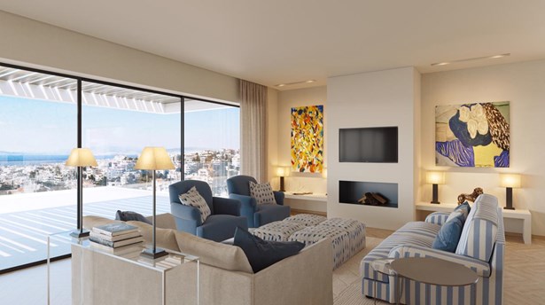 A unique modern second floor penthouse maisonette of 346 square meter total area is ideally located in a quiet and exclusive sought after location in Voula along the Athens Riviera, between glamorous Vouliagmeni and glitzy Glyfada, yet close to all amenities and perfectly placed close to beaches, beach clubs, restaurant and coffee bars. This two-level apartment develops on the second floor of 180 square meters that is consisted of two master bedrooms with walk-in closets, two ensuite bedrooms and a laundry room. The third floor of 112 square meters includes an open plan living room - dining room- kitchen with a fireplace, a full bathroom and one spare bedroom that can be used as an office space. The highlight of this property is its brilliant and spacious outdoor spaces that offer dazzling views to the sea and a swimming pool. This elegant maisonette is designed with meticulous attention from the inside out, taking full advantage of every available space, to create a fabulous interior with spacious living area and large bedroom suites. Overall, comprised of four voluminous en suite bedrooms, an office space, a service room in the basement, open space living room with a fireplace and spacious outdoor spaces with a swimming pool on the balcony, this penthouse is a conceptual triumph. This property also comes with three underground parking spaces and a storage space of 25 square meter total surface. Features • Four ensuite bedrooms • One service room • Office room • Fireplace • Balconies • Swimming pool • Three underground parking spaces • One storage room 32 square meters Estimated delivery: Autumn 2023