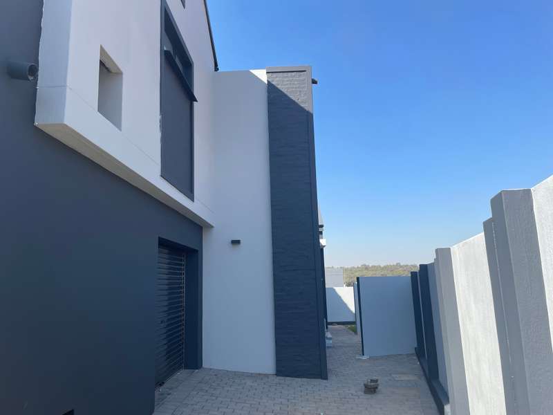 Brand New, Exquisite Double-Story Home in Fountain-brook Estate is about to be completed. OFFERING: 3 Bedrooms. 2 Bathrooms. Open plan Kitchen with an Island, breakfast nook and separate Scullery. Open plan Lounge and Dining Room. Enclosed Patio area with a Built in Braai. 2 x Automated garages. Guest toilet. Servants room and bathroom. Welcome to this stunning double-story home in the sought-after Fountainbrook Estate, offering a blend of modern living and functional design. As you enter through the impressive double-volume foyer, you'll be greeted by an expansive open-plan lounge and dining area that leads to an braai room, perfect for entertaining. The braai room features a built-in braai with a prep bowl, ensuring a seamless cooking experience for family and friends. The contemporary kitchen is a chef's dream, complete with a central island that includes a prep bowl and doubles as a breakfast nook. A separate scullery ensures the main kitchen remains tidy and organized, and a convenient kitchen yard leads to a staff room with its own en-suite bathroom, featuring a shower. The stacking doors from the braai room opens onto the beautiful garden, where you'll find a refreshing pool and a cozy boma area, ideal for relaxing or hosting outdoor gatherings. The front of the property features a double garage, offering secure parking and easy access to the home. Upstairs, the sleeping quarters are equally impressive. The spacious main bedroom includes ample cupboard space and an elegant en-suite bathroom. Bedrooms 1 and 2 share a full family bathroom, and bedroom 2 opens up to a private balcony, offering a peaceful retreat with lovely views. Contact me to arrange viewing