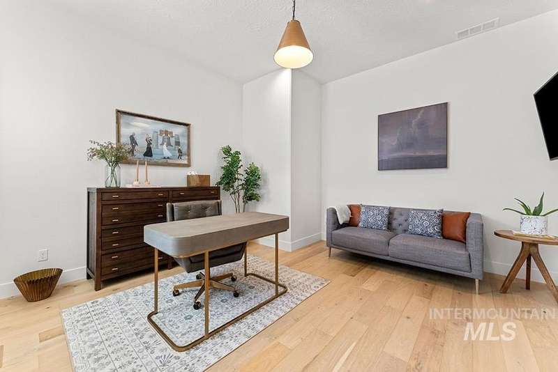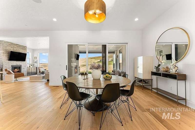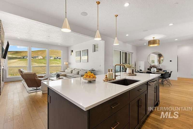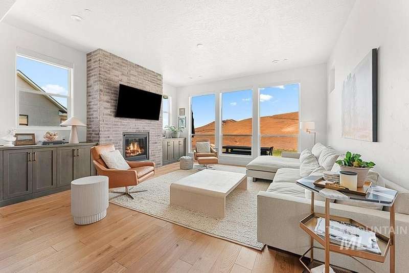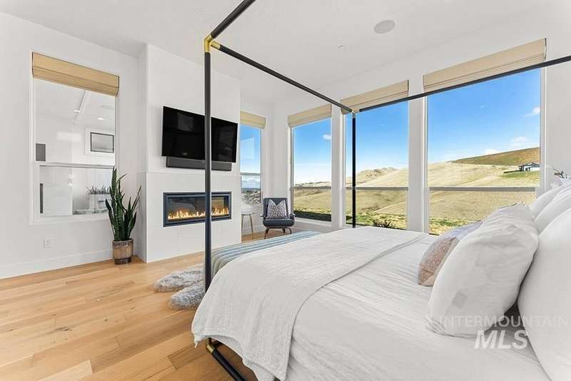 Nestled on a serene cul-de-sac in the sought-after Pinnacle at Harris North, this stunning modern home blends style and comfort on a rare rim-lot with breathtaking foothill and city-light views. Spacious and versatile, it offers 6 true bedrooms, a dedicated office, and an expansive bonus room with wet bar and balcony—perfect for relaxation or entertaining. The chef’s kitchen shines with a 12-foot island, custom cabinetry, full-wall tile backsplash, and premium Bosch appliances, ideal for hosting family and friends. The main-level primary suite is a tranquil retreat with a cozy fireplace, spa-like bath, dual walk-in closets, and panoramic picture windows. Upstairs, four additional bedrooms provide ample space for all. Enjoy resort-style community amenities, including a pool and miles of scenic trails just steps away. Newly priced, this is a rare opportunity to own a home that combines luxury and lifestyle in an unbeatable location. Schedule your private tour today!