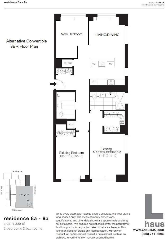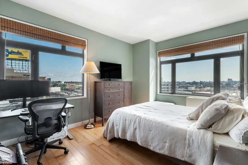 This spacious and bright convertible 3-BR home is now available at The L Haus Condominium in Long Island City! Currently configured as a 2BR/2BA, unit 8A offers space, ample storage, and bright natural light throughout. At 1,338 sq.ft., this is one of the largest 2BRs on the market in LIC right now. The living room is so big and the layout so efficient, it could easily be converted into a 3BR. Even better, this corner apartment offers three exposures--East, South, and North--which allows for an open and airy feel to the entire unit. Triple-pane windows, hard wood floors, and Bosch W/D add to both the luxury and functionality of this apartment.