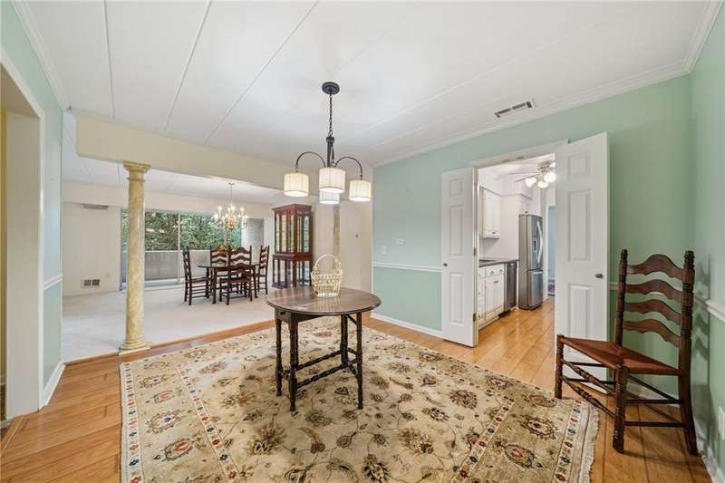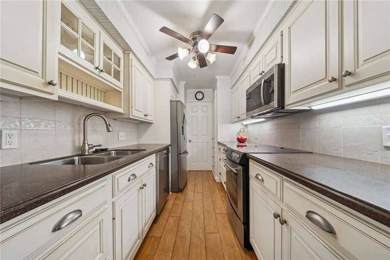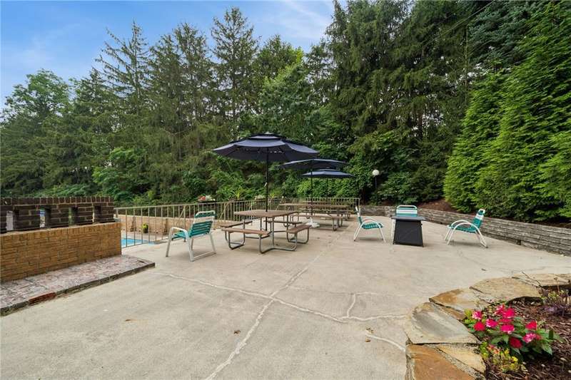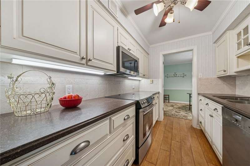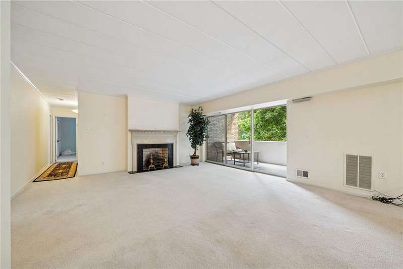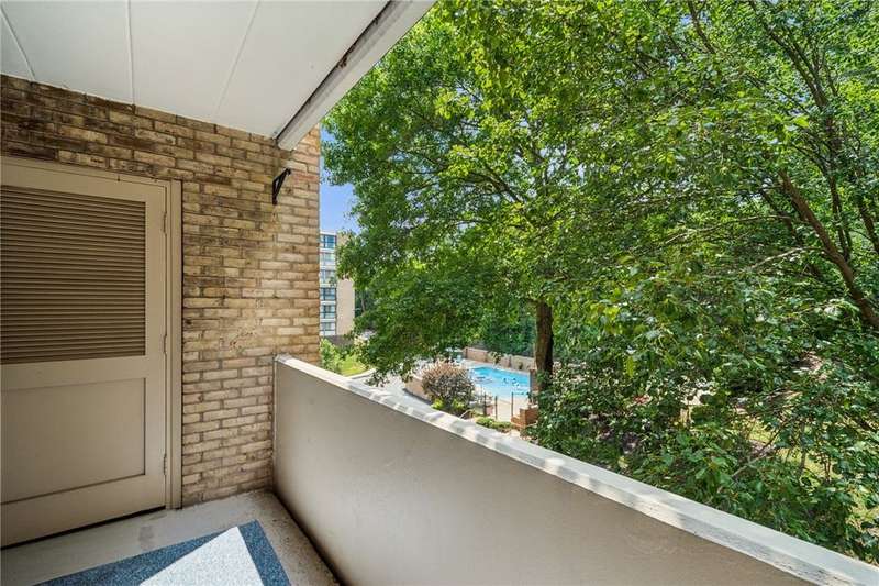 Spacious and elegant 3 bedroom, 3bath double end unit. Step into a grand marble foyer that opens to a large living and dining room combo, featuring custom faux marble electric fireplace and two private balconies with views of pool and lush greenery. Stately pillars separate the dining area from the cozy kitchen nook. Updated kitchen boast custom cabinetry, granite, stainless appliances and a seamless flow to adjacent den/office. An ensuite bedroom with remodeled bath with walk in shower and large walk in closet are just beyond through French doors. 2 additional bedrooms positioned on the opposite side of the living space with 2 additional updated baths. One of only 2 units in the building that includes a laundry room. Closets with custom shelving, 2 private storage units, garage parking, secure building, modern lobby, and outdoor pool. HOA fee includes: Gas, Water, Sewage, Trash, Basic Cable, and exterior maintenance.