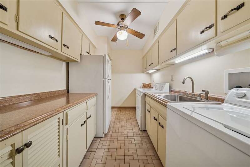 Spacious and elegant 3 bedroom, 3bath double end unit. Step into a grand marble foyer that opens to a large living and dining room combo, featuring custom faux marble electric fireplace and two private balconies with views of pool and lush greenery. Stately pillars separate the dining area from the cozy kitchen nook. Updated kitchen boast custom cabinetry, granite, stainless appliances and a seamless flow to adjacent den/office. An ensuite bedroom with remodeled bath with walk in shower and large walk in closet are just beyond through French doors. 2 additional bedrooms positioned on the opposite side of the living space with 2 additional updated baths. One of only 2 units in the building that includes both a laundry and walk in pantry. Closets with custom shelving, 2 private storage units, garage parking, secure building, modern lobby, and outdoor pool. HOA fee includes: Gas, Water, Sewage, Trash, Basic Cable, and exterior maintenance.