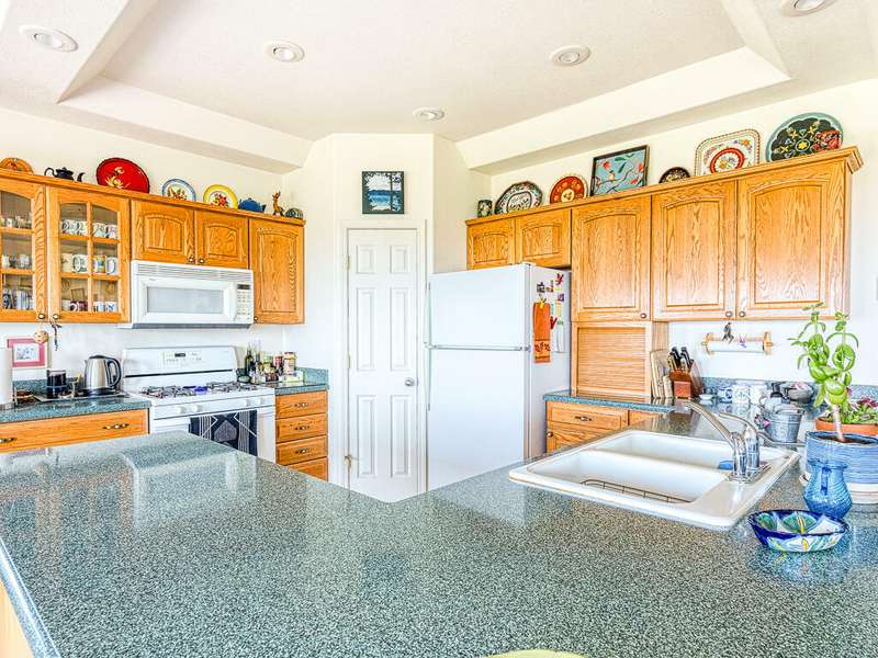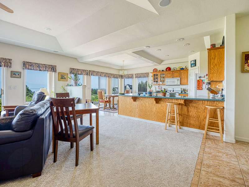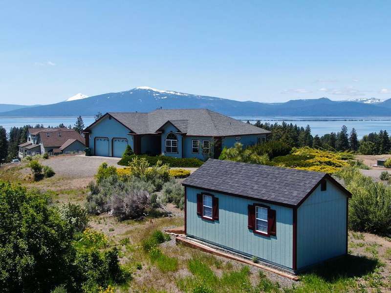 This charming 3 bed/2 bath home is situated perfectly on a total of 2.18 acres to offer hilltop views of shimmering Agency Lake and the Cascade Mountains, with endless breathtaking sunsets, stargazing & wildlife viewing. The open floor plan is accentuated by coffered high ceilings, Berber carpet and tile flooring. The living room features a dual-sided propane fireplace & built-in entertainment cabinets and leads out to a patio for outdoor enjoyment. The kitchen features ample storage w/ built-in pantry and sturdy oak cabinets including pullouts. The spacious primary bedroom features the fireplace, bay window, and a window seat overlooking the fabulous, ever-changing views. The primary bath offers tile floors, jetted tub, tiled shower, double vanity & walk-in closet. Additional highlights include oversized 2-car garage, wiring for backup generator, low-maintenance landscaping and a 10' x 20' storage shed. The sale includes 2 legally separate tax lots, the 2nd tax lot is buildable.