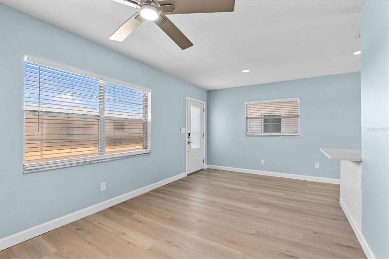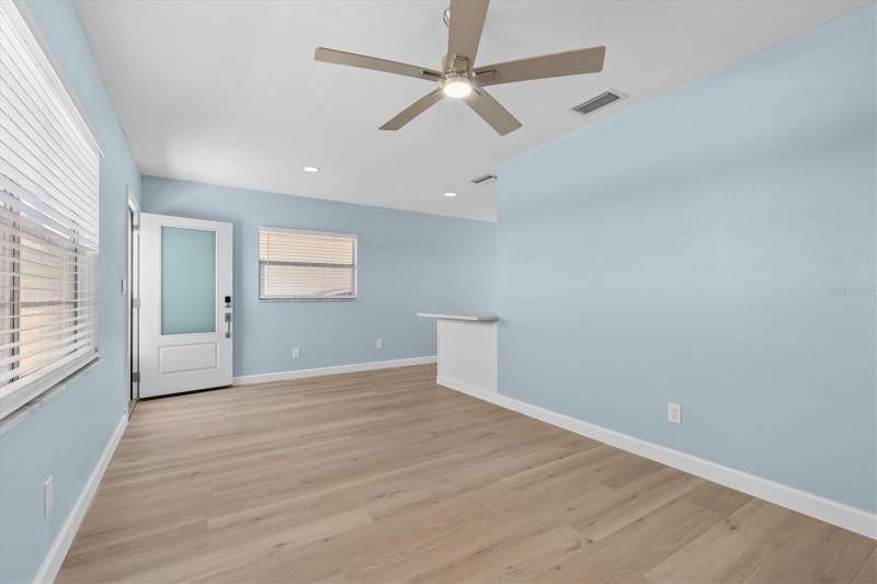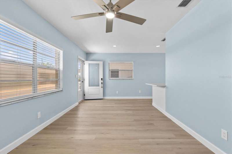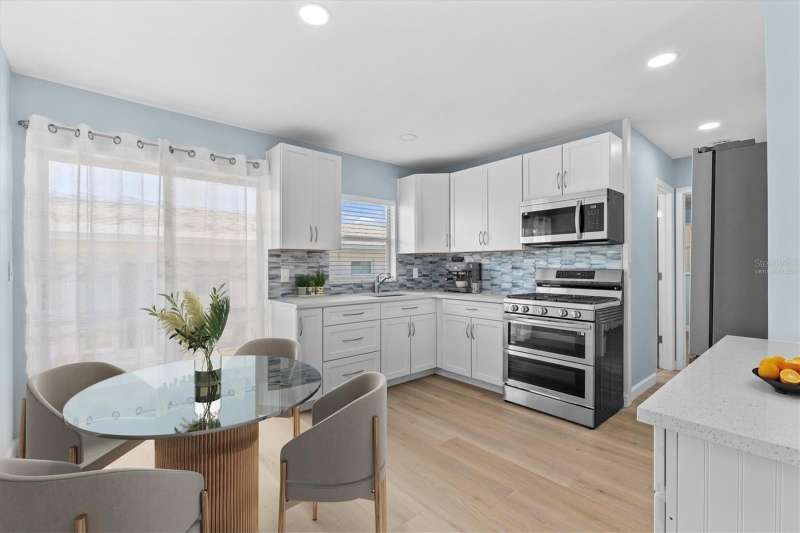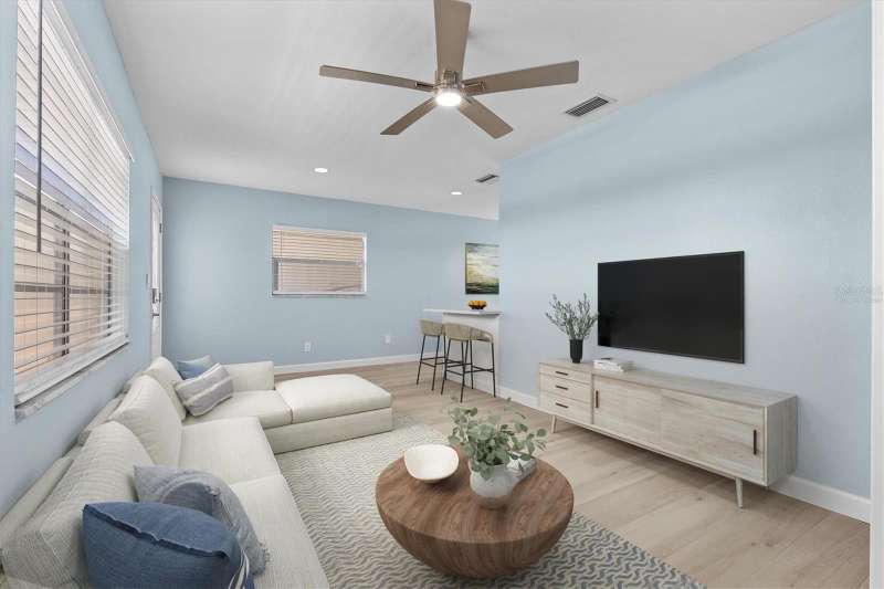 One or more photo(s) has been virtually staged. Seller is willing to Pay HOA Monthly Fee TILL END OF YEAR - Priced to sell, in this NON Land Lease community and NOT a Co-Op - Buy CONFIDENTLY - Here’s your opportunity to own a maintenance-free, beautifully renovated villa in the warm and welcoming 55+ community of Seminole Hill Villas. Ideally located just 7 minutes from Indian Shores Beach and only 4 minutes from major shopping and dining options including Publix, Fresh Market, HomeGoods, Talbots, Outback Steakhouse, Miller’s Ale House, and more, this home combines convenience with coastal charm. This stylish, move-in ready condo features a covered carport and a private laundry room with stackable washer/dryer hookups. Inside, you’ll be welcomed by an abundance of natural light and brand-new luxury vinyl flooring throughout. The home offers 640 heated square feet + 80 additional square feet in the office/den space, equating to 720 living square footage. It has a smart and open layout that feels surprisingly spacious. The living room flows into a versatile den area, ideal for a home office, guest space, or custom storage. The kitchen has been tastefully renovated with soft-close shaker cabinetry, pull-out drawers, quartz countertops, stainless steel appliances, a gas stove, a sleek new sink with a produce washing station, and a generous pantry that leads toward the owner’s suite and bathroom. Major system updates include a new HVAC system and water heater, both installed in 2019, and a brand-new electrical panel, offering added peace of mind and energy efficiency. The updated bathroom features a walk-in shower with dual shower heads, modern low-maintenance tile, and a clean, stylish vanity. Throughout the home, new interior doors and brushed nickel fixtures add a cohesive, high-quality finish. The owner’s suite is well-sized and includes a deep closet for ample storage. Seminole Hill Villas is a true community, with owner-occupancy only meaning rentals are not permitted, encouraging long-term friendships and neighborly connections. Amenities include a clubhouse with a kitchen and regular social events, an exercise room, a game area, coin-operated laundry, an outdoor clothesline, shuffleboard courts, and a gated pool with plenty of lounge chairs and tables. The HOA fee is $453/month and includes water, sewer, trash, cable, internet, property taxes, and exterior and community maintenance, offering excellent value and worry-free living. Don’t miss this rare opportunity to own a fully updated villa in a quiet, friendly community just minutes from the beach!