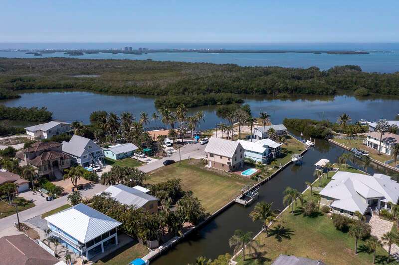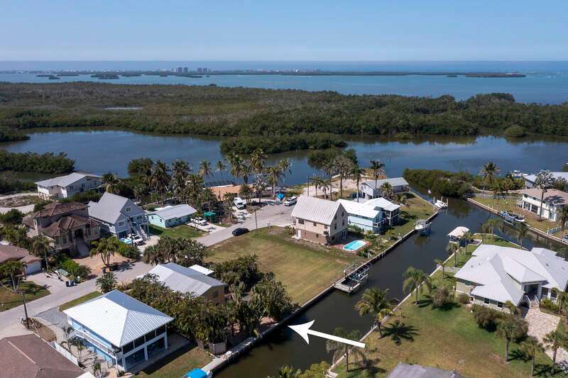 Charming Key West-style Gulf-access cottage perfect for a winter getaway. Rarely Offered Gulf access just minutes to New Pass and the Gulf. High & dry upper-level great room, master and 2nd BR plus 19-ft covered deck. Ground-level garage, storage & workshop. Brick pavers everywhere: on driveway, walkways, & backyard featuring a 33x10 ft pergola. Botanical plantings include mature orchids naturalized in trees. No grass to cut. Manual storm shutters, fish clean station, rain barrel. Newly painted interior and exterior. Estero Bay Shores is an intimate waterfront neighborhood tucked between Pelican Landing & The Colony west of Rt 41 on the edge of Estero Bay, just 5 min to Coconut Point Mall, 23 min to the RSW airport. Built 1986, updated in 2003, the seawall was new 2005. There are no rental restrictions or homeowner association fees.