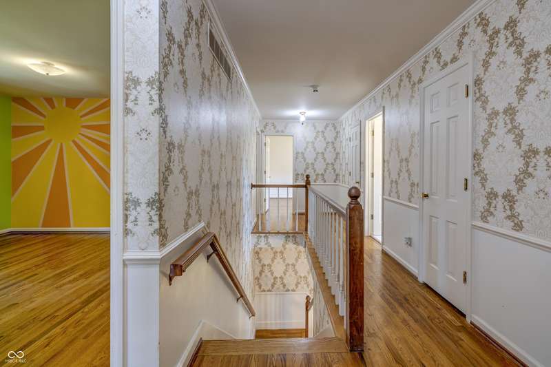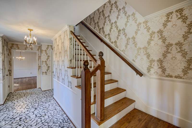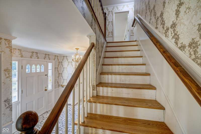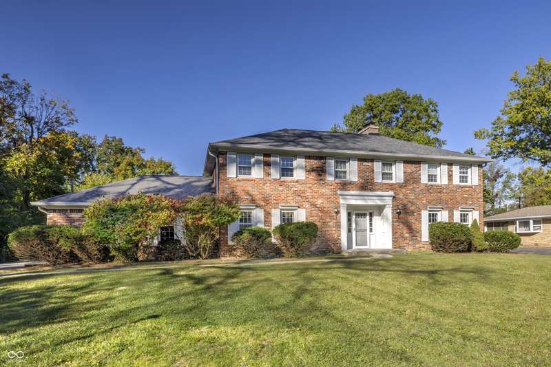 Welcome to this stately all-brick traditional home located in the desirable Brendonshire neighborhood of Lawrence Township. The main level features a welcoming foyer, kitchen, formal dining room, family room, and living room - all designed for comfortable living and entertaining. You'll also find a convenient laundry room and two half baths on this level. Upstairs offers five generous bedrooms and two full bathrooms, providing plenty of space for family and guests. The basement expands your living options with a large great room, additional living area, utility room, and storage space. With three fireplaces throughout - two on the main level and one in the basement - this home offers warmth and character in every season. Set on a beautiful lot in a quiet, established neighborhood, this property combines timeless style with modern functionality.