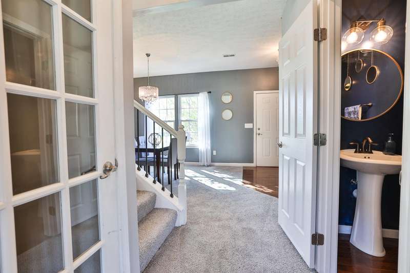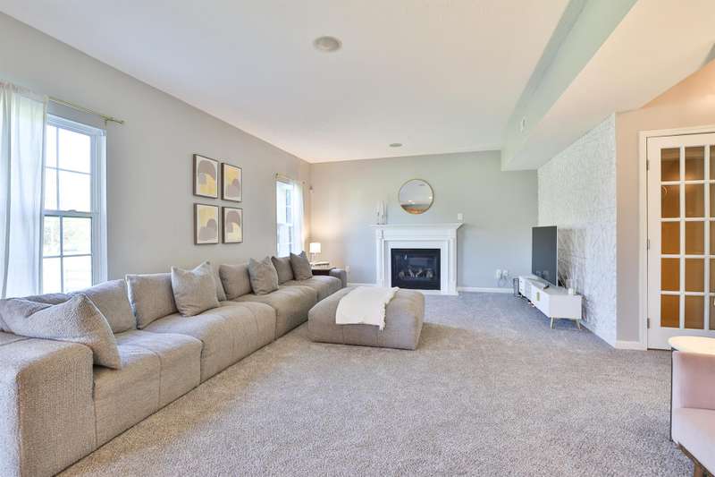 Custom built Ryan Home Venice Model. Perfectly situated aside sprawling farm views. Near I-275 w/easy access to shopping, dining & commuting. Boasting 2992sq ft of living space w/3 car attached garage. This spacious home combines thoughtful upgrades, modern finishes w/built-in Legrand On-Q speakers thru-out. Upgraded accent wall, updated banister & smart home features like Nest thermostat & Nest smoke/CO detectors. Enjoy brand new carpet, fresh interior paint & updated lighting fixtures inside & out. Kitchen is chef's dream w/new tile backsplash, GE Cafe refrigerator & dishwasher, granite countertops, Hdwd flooring extending from kitchen into foyer & morning rm. The upstairs layout includes a convenient 2nd flr laundry rm, spacious bdrms. Upgraded primary bdrm features new barn door & ceiling fan w/en suite bath w/new toilet. Guest bathroom has been fully remodeled w/new tile flooring, stylish vanity, new toilet & modern lighting. Finished LL offers additional living space & half bath.