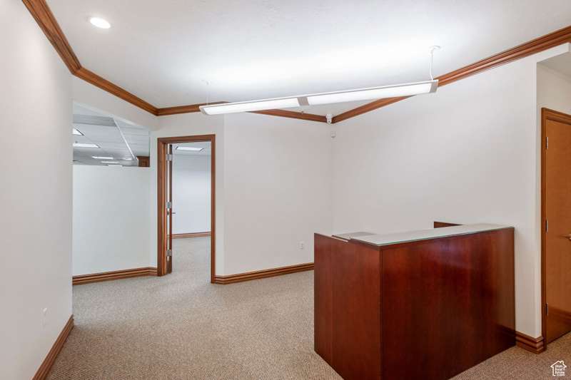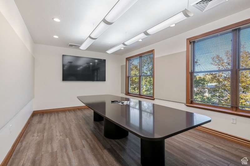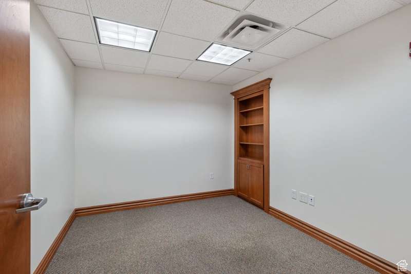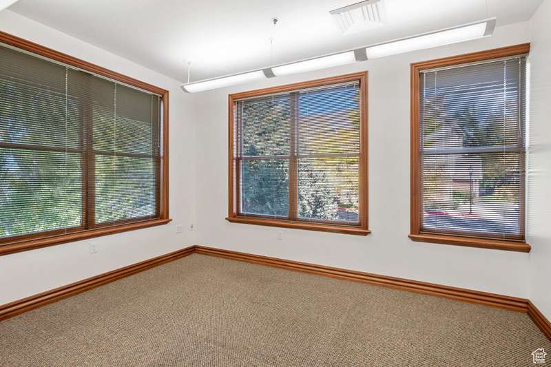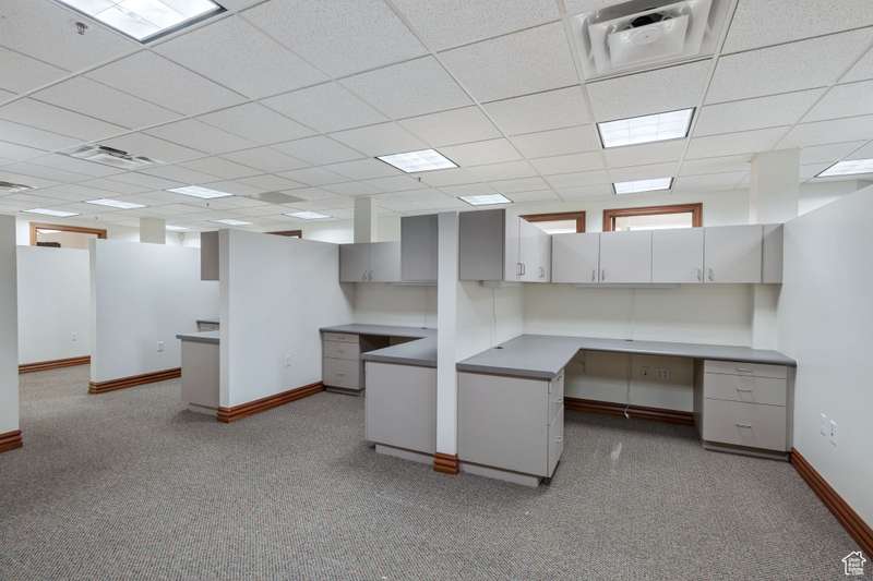 Perfectly located office space with excellent visibility and convenient access to I-215. Recently updated throughout, featuring nine private offices, multiple cubicles and workstations, a spacious conference room with a large stationary table, and an additional smaller meeting room. Includes a break room, built-in cabinetry, elevator, and security cameras. Independent HVAC units offer personalized comfort. Underground designated parking completes this professional and collaborative workspace.
