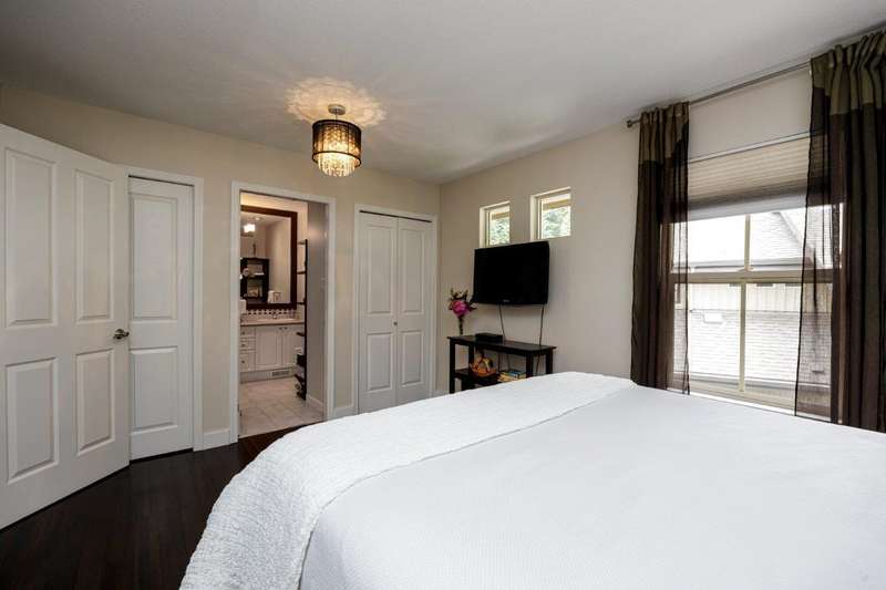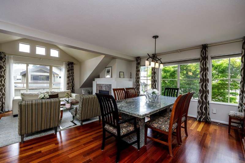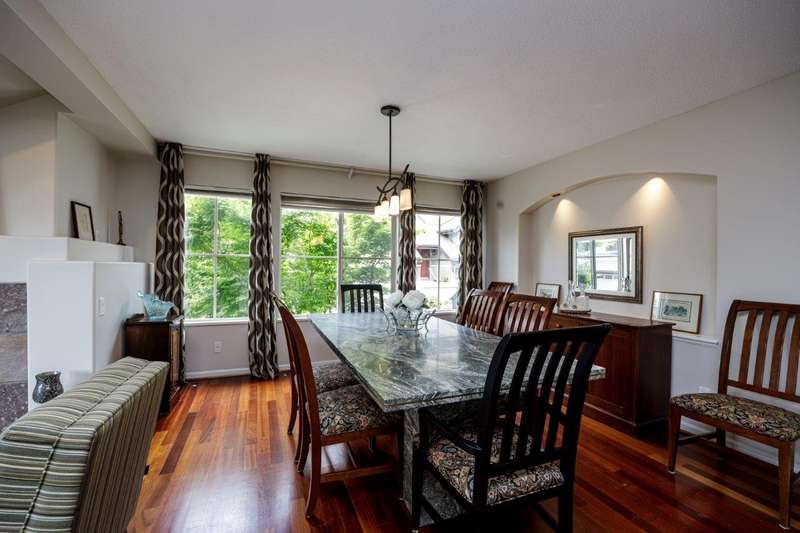 An absolutely beautiful 4-bedroom home, the largest at the very desirable Nahanee Woods. An exceptional community, this secluded oasis is surrounded by greenery, but only steps away from amazing amenities! Backing onto protected greenspace, located right beside Northlands golf course & across the street from McCartney Creek Park. You can be in Deep Cove in 5 minutes, on Seymour Mountain skiing or downtown inside 25 minutes. This lovely home features 3 full bathrooms, 2 cozy fireplaces, fresh paint throughout, cherry wood floors, wonderful back deck ,a spacious two-car garage and pets are welcome in this inviting complex. Meticulously maintained, Nahanee Woods is renowned for its attention to detail. Homes in this outstanding development are rarely available. Open Sat 2-4