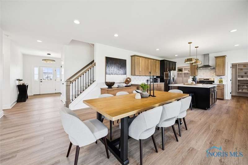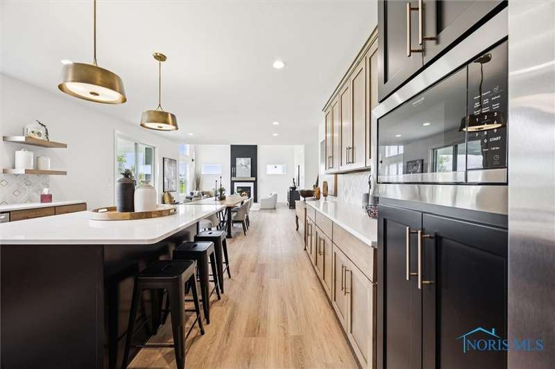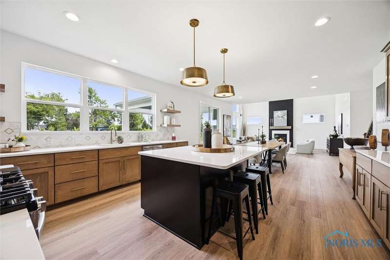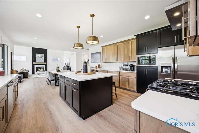 Step into redefined luxury with a grand open-concept layout. The 2-story great room features floor-to-ceiling fireplace & oversized windows, flooding with natural light. The chef's kitchen offers endless countertop space, designer light pendants, tiled backsplash, extended island ideal for entertaining, & walk-in pantry w/ custom wooden shelving. Relax in the spa-like owner's suite with a glass walled, tiled shower and freestanding tub. Multiple walk-in closets throughout. Don't forget about the covered patio. With an additional Junior Suite & Mother in-law Suite, there is a room for everyone!