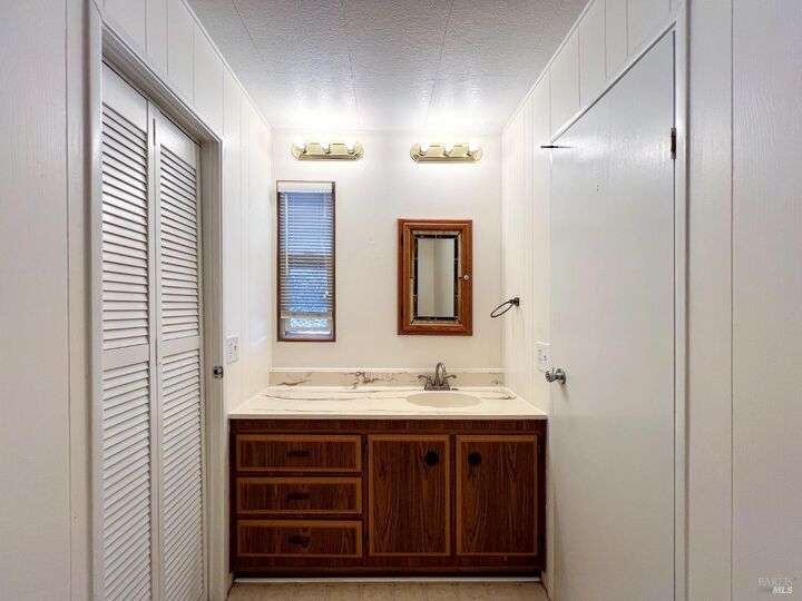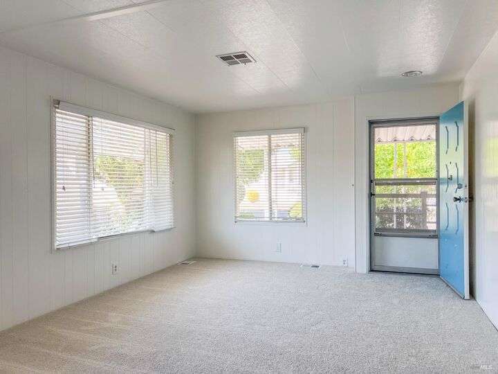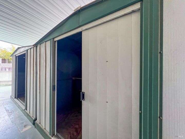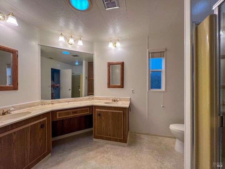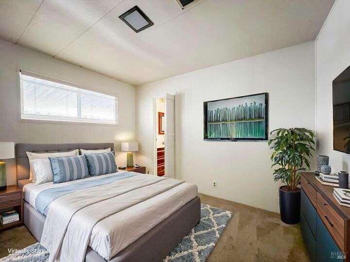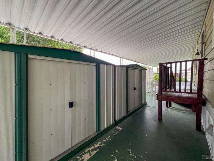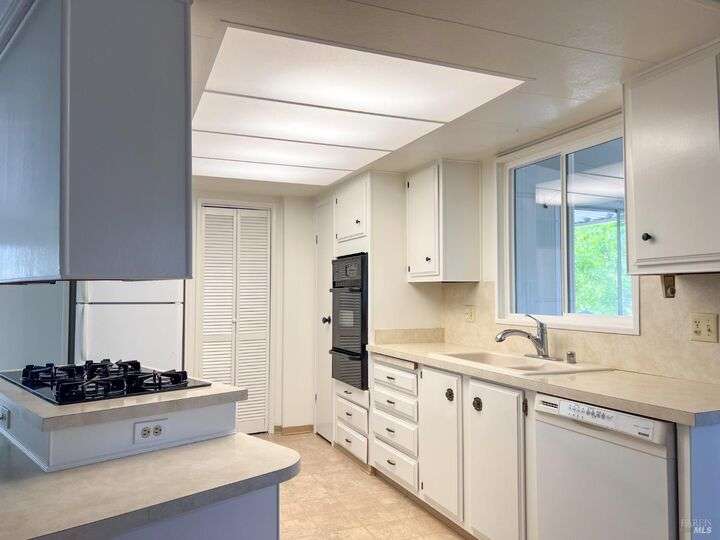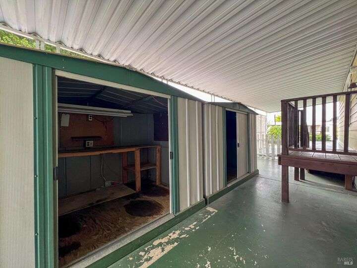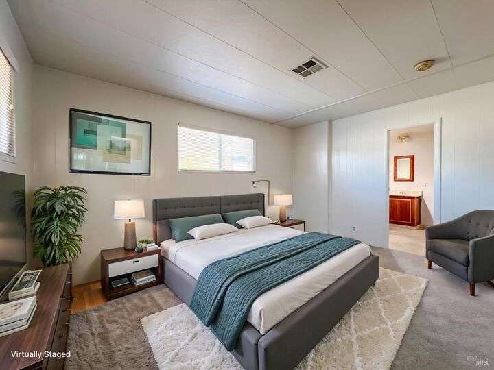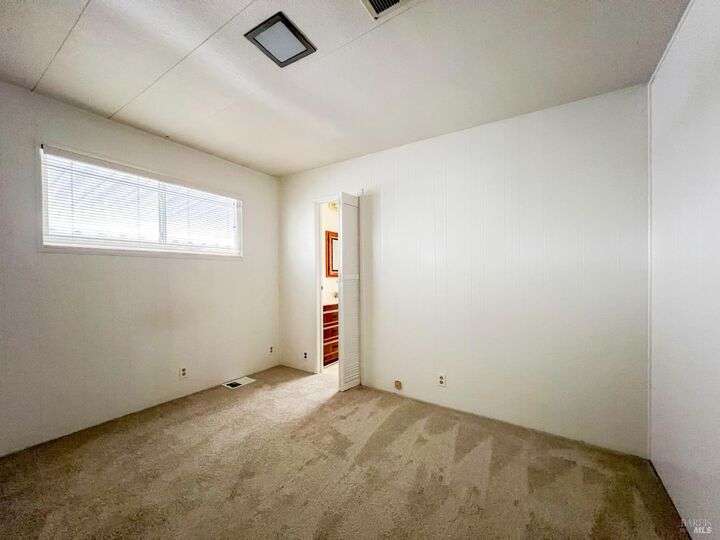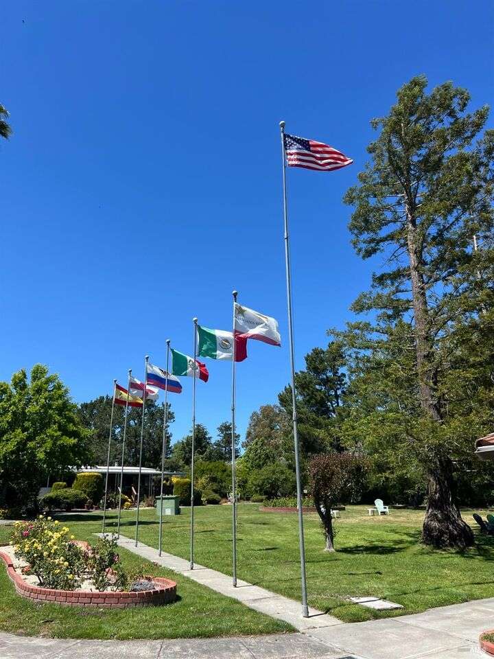 Prime cul-de-sac location with vineyard views - 2BR/2BA home. Open living/dining area with built-in buffet, kitchen with island and two pantries, plus adjoining family room. Light-filled with skylight tubes, new carpet, and fresh paint. Enclosed sun porch, multiple decks, and two storage sheds. Covered tandem carport plus ample street parking. Community pool, clubhouse, and recreation areas in a desirable 55+ park.
