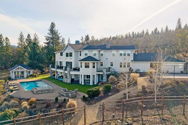 Whether you're looking for an exceptional home for an active family, a showplace for entertaining, or a sanctuary to relax, you will find it at this custom home minutes outside historic Jacksonville. Set down a quiet private drive, this stunning view property has almost every amenity imaginable. The open living area has a 2 story LR, chef's kitchen w/ quartzite counters, stainless appliances & 2 dining areas. The mud room has a pantry & separate laundry center. The luxurious main flr primary suite has a gas f/p, as well as spa-inspired bath w/ steam shower & soaking tub. The upper level has a library loft, 2 large bedrms w/ a shared bath, office, game rm, & a fabulous den w/ built-in study areas. The lower level offers an entertainment-oriented family rm & kitchen, 2 bedrms w/ a shared bath, & a wine cellar. Outdoor living spaces include a covered patio w/ BBQ, pool, hot tub, gas firepit, pool house, & a sport court. There is also a separate parcel w/ a vineyard, barn & arena.