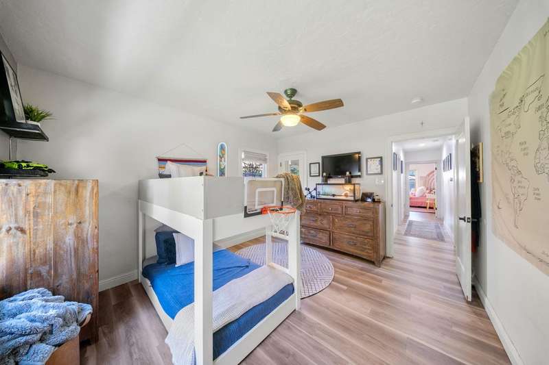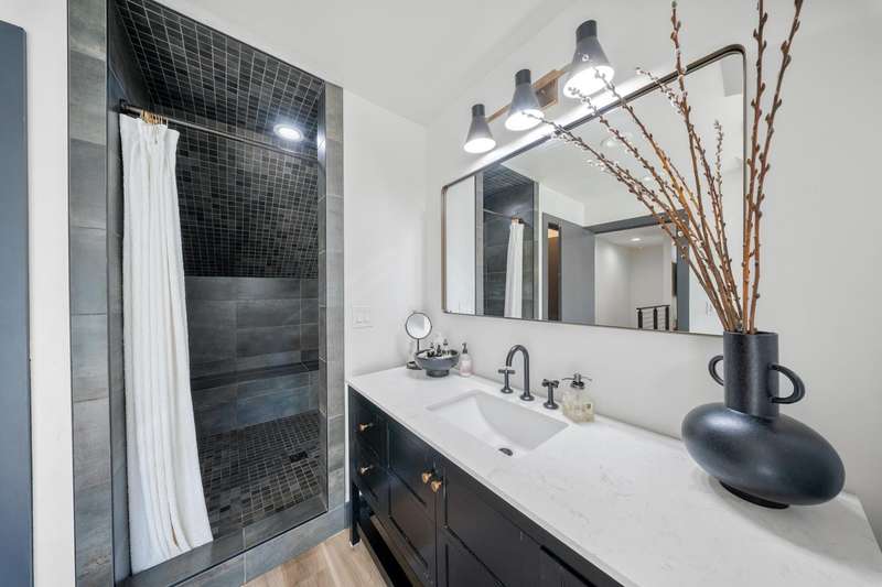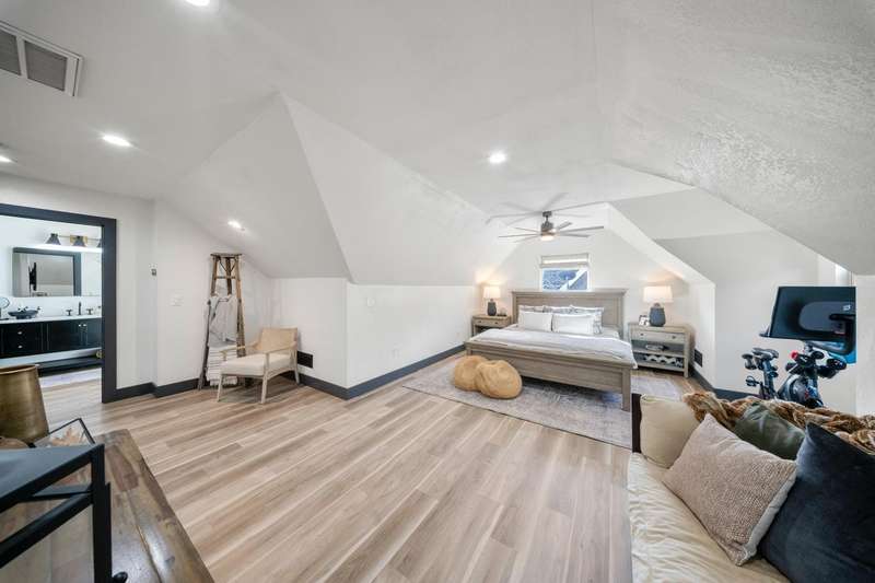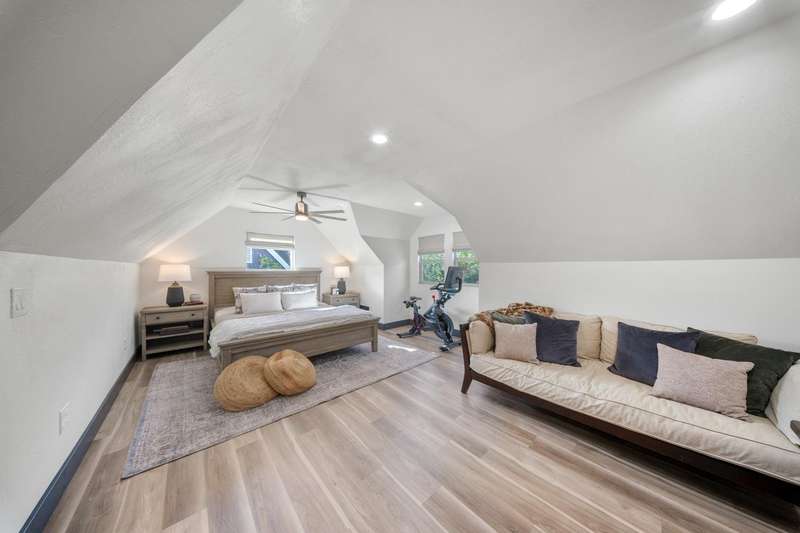This captivating College Area Tudor home flawlessly marries classic charm with elevated modern luxury, highlighted by a second-story addition designed by architect David Perry. This addition created a luxurious Primary Retreat, featuring a private reading area, a spa-like bathroom with a massive shower and deep soaking tub, and an expansive walk-in closet, with the fourth bedroom cleverly used as an additional closet. The interior boasts high-end updates like Brizzo fixtures, expert tile, durable plank flooring, and a sleek stairwell, complemented by updated HVAC, windows, electrical, and plumbing. The adorable, updated kitchen maintains the home's original character while offering modern functionality and appliances. Outdoors, the re-landscaped property is an oasis with custom lighting, a private fence/wall, an outdoor spa, a pergola, and extensive concrete for entertaining. The detached two-car garage is utilized as a versatile man cave, delivering a truly sophisticated and turn-key living experience.