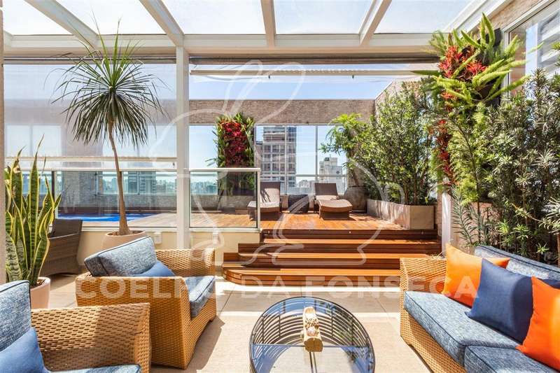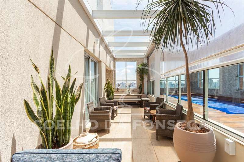Cobertura no bairro Moema com 437m² área privativa/útil, 4 dormitório(s), 4 suíte(s), 8 vaga(s), 5 banheiro(s), piscina, churrasqueira, terraço, duplex, ar condicionado, dep. de empregados, reformado (a), varanda gourmet.