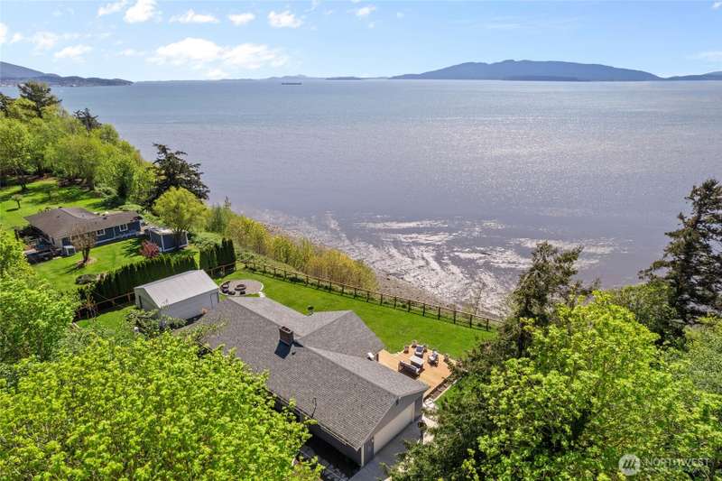 NEW SPECIAL: 3.95% seller financing for 1st yr, 5.00% after. An iconic coastal sanctuary fully reimagined from its core. Perched above the bay with 150’ of tidelands, this acre+ retreat offers jaw-dropping views and total privacy that makes you feel like the only house on earth. Stylish open kitchen, expansive deck, fresh layout, fully fenced and professionally landscaped grounds. Downstairs is kitchen-ready—perfect for separate living, guests, or rental potential. RARE detached 2-car shop. Fire pit nights, quiet mornings, and wildlife for days. Minutes to downtown, yet a world away. Find immense comfort here with the full remodel. No deferred maintenance. A/C. True Bellingham hidden gem--now polished and ready for you.