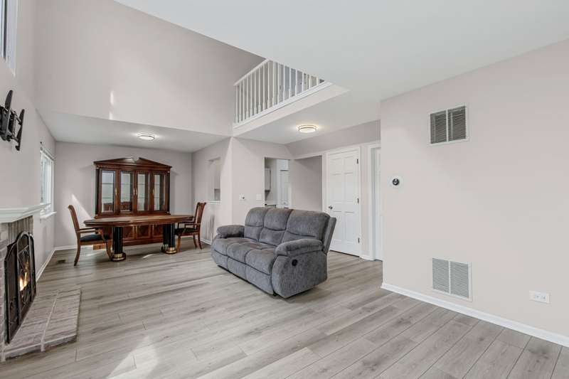 Welcome to the highly sought-after Westgate townhomes! Step inside to an inviting open floor plan where soaring ceilings and a cozy fireplace set the tone in the living room. The bright and cheerful kitchen offers plenty of cabinets, generous counter space, and a sunny breakfast area perfect for casual dining. Spacious dining room. Upstairs, you'll find a spacious primary suite with a private ensuite bath, plus two additional bedrooms and a full bathroom. A slider leads to your own deck-ideal for morning coffee or evening relaxation. Attached garage with electric car charger. With easy access to the tollway, and a welcoming community, this home is a must-see!