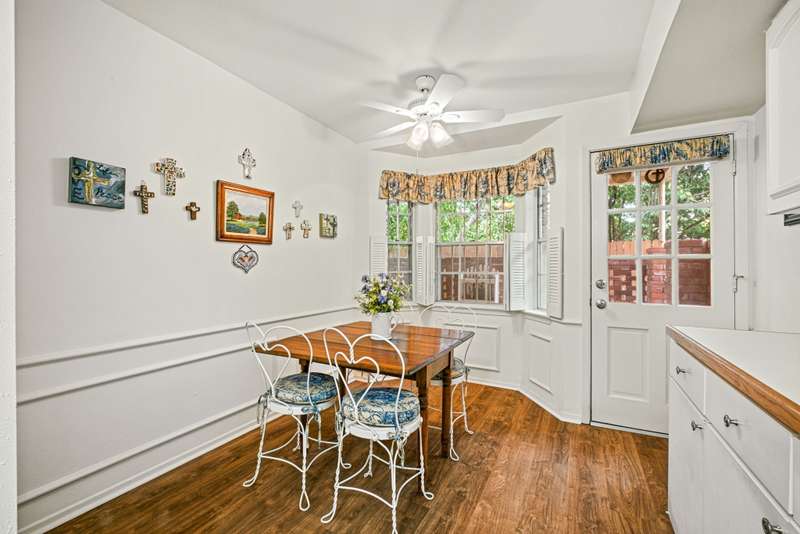 Step into the pinnacle of convenience and luxury at this Alamo Heights area, Alamo Heights ISD condominium. A stylish and cheerful front entrance greets you at this first floor home with open floor plan. The large living room with wood floors, high ceilings and an abundance of natural light is ideal for welcoming family and friends. A dedicated dining area flows seamlessly into the kitchen, while a charming bay-window breakfast room overlooks a private patio-ideal for gardening, morning coffee, or relaxing outdoors. The well-equipped kitchen includes a large utility closet with space for full-size, side-by-side washer and dryer, along with generous storage. The secondary bedroom is spaciously designed, with a large closet. A sophisticated guest bath adorned with custom wallpaper is sure to impress. Additional hallway closets ensure you'll never run out of storage. The primary suite is a true retreat, featuring a sitting area, patio view, and an expansive walk-in closet. The primary bath is thoughtfully designed with a vanity/dressing area and a private water closet with tub/shower combo. What sets this home apart is the third bedroom. Outfitted with built-ins, it can easily serve as a versatile office or family room. French doors open directly onto the pool-essentially a private extension of your living space, perfect for year-round enjoyment and entertaining. Practicality meets convenience with an exclusive two-car carport just steps from the front door and an under-stairs storage closet. Located at the Royal George Condominiums, you'll be within walking distance of excellent shopping, dining, and top-rated Alamo Heights schools. - 10/19/2025 3:17:04 AM
