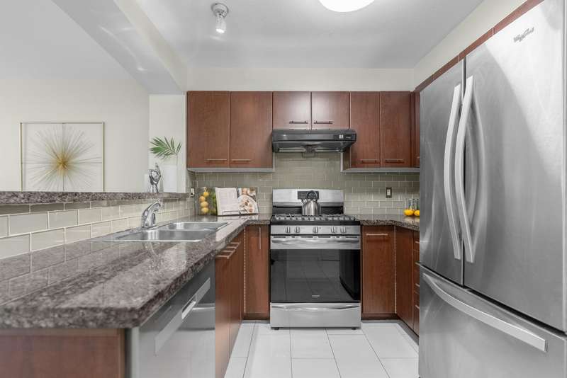 Welcome to Lions Park by Polygon! Located in the heart of Richmond! Just steps from Kwantlen University, Lansdowne Centre, Canada Line, restaurants, recreation & so much more! This spacious 1 Bed + Den ground-level suite offers an open-concept floor plan with 337 sq.ft patio leading to landscaped courtyard and water fountains. Kitchen offers stainless steel appliances, gas cooktop & sleek granite countertops. Inside unit facing the quiet courtyard! 1 Parking Stall included. Amenities include: gym, yoga/dance studio, guest suites, playground, outdoor swimming pool, hot tub, lounge area, billiards table, theatre room, visitor’s parking & caretaker. New painting, New floor, Move-in ready! Open house: Sept 27 Sat 2:00-4:00 Sept 28 Sun 2:30-4:30