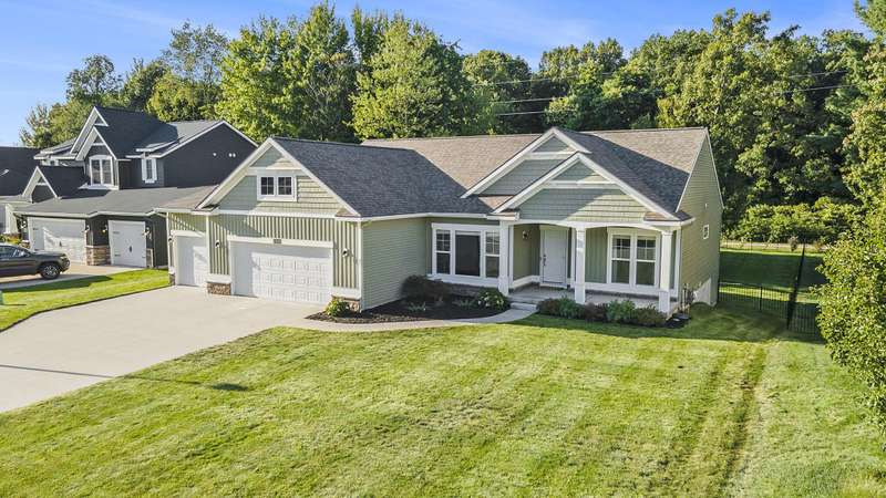 Beautiful well maintained ranch home in Hathaway Lakes. The open floor plan allows you to flow effortlessly throughout the main floor. The kitchen has an oversized center island w/granite tops, eating area and pantry. Separate dining room with large daylight windows. Master suite has a trayed ceiling, large walk-in closet and custom tiled shower. Two well appointed bedrooms share a full bath. The sunroom and elevated deck overlook a fenced in backyard and custom patio which is located along the North Bank Trail. The laundry room and ''drop zone'' are conveniently located off the 3-stall garage. There are 3 egress windows in the unfinished basement giving you the option for more bedrooms. There is also a community pool, clubhouse, fitness center and beach access to the lake. Easy access to Grand Rapids, Muskegon, and Grand Haven.