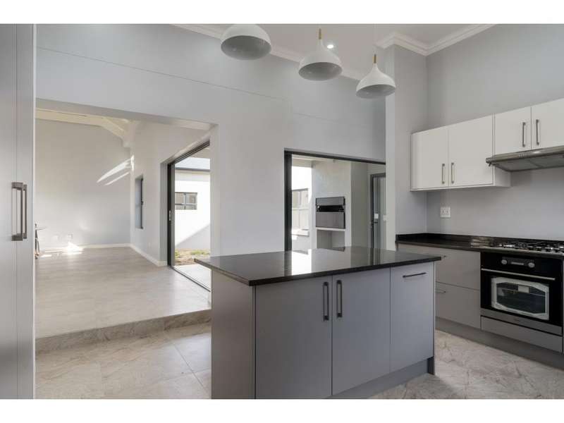 No transfer duty! This stunning, brand-new home offers a haven for your family and a prime location in Paarl, with breathtaking views and natural beauty right outside your doorstep. Designed for connection and comfort, the open-plan layout blends the living area and fully-equipped kitchen, creating a space for entertaining or spending quality time. Step outside and find the covered patio with a built-in braai and private garden ?Çô perfect for enjoying the sunshine. Modern kitchen, complete with sleek granite countertops, a gas stove, electric oven, and ample storage to keep everything organized. Three spacious bedrooms provide a escape for the whole family. The main bedroom boasts a en-suite bathroom, while the other two bedrooms share a full bathroom. All bedrooms come with built-in cupboards for clutter-free living. This home offers space and convenience, the best of both worlds: a double garage and additional parking for two cars. Situated in sought-after Paarl South, you'll enjoy easy access to the N1, top schools, and all the amenities you need for a comfortable life. Don't miss out on this incredible opportunity! Call today to arrange a private viewing.