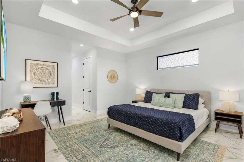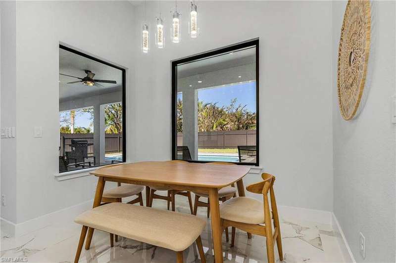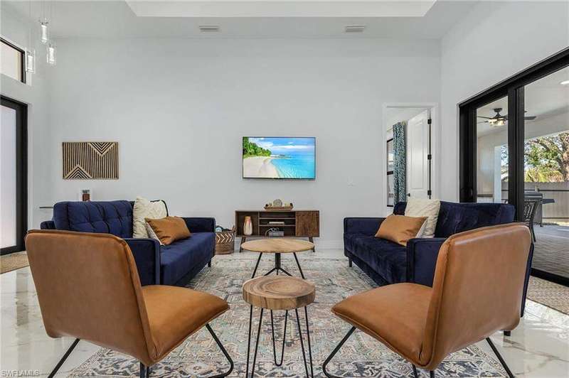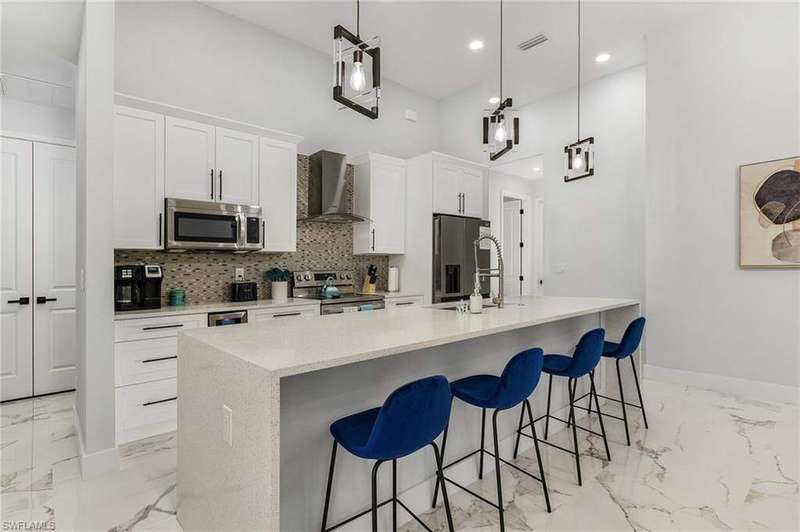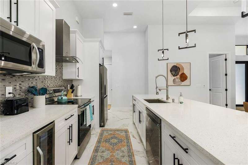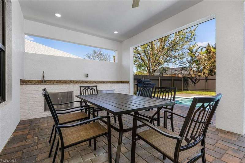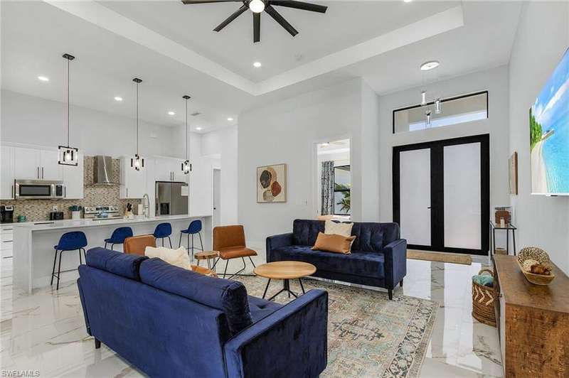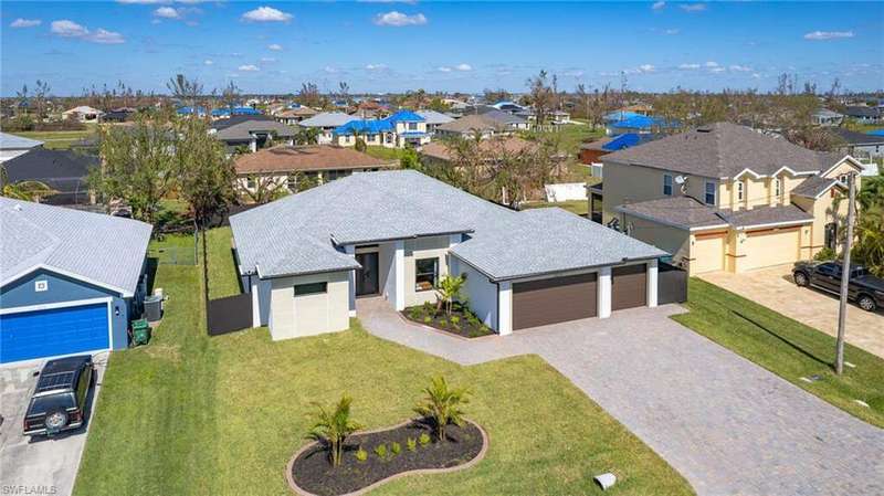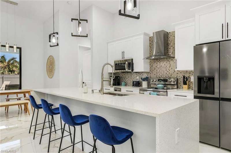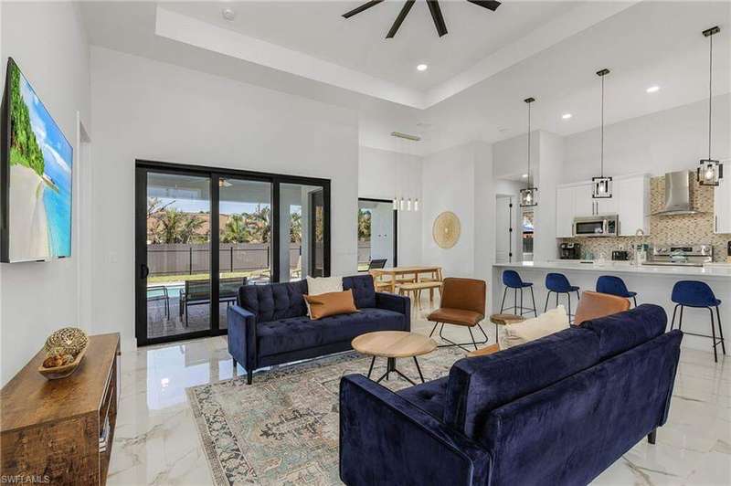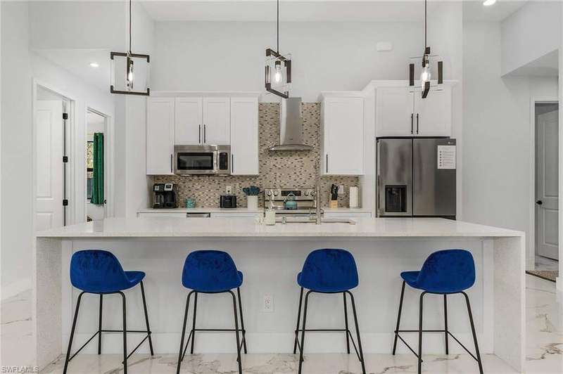 NO FLOOD INSURANCE REQUIRED. The moment you approach this stunning home, the pride of ownership is immediately evident. A newer build that has been meticulously cared for, this property boasts a beautifully landscaped and fenced yard, and a spacious 3-car garage with a paved driveway. Step through the elegant double glass doors and be greeted by soaring vaulted ceilings in the open-concept great room. The heart of the home, the kitchen, seamlessly flows into the great room and features a large center island with sleek quartz countertops and plenty of seating, perfect for entertaining. Adjacent to the kitchen, the dining area offers additional space for gatherings, enhancing the home's overall functionality and style. Designed with a split bedroom floor plan, the primary suite offers privacy on one end of the home, complete with a grand en-suite bathroom that includes a luxurious slipper tub, a beautifully tiled shower, and double vanities. The additional bedrooms are generously sized and thoughtfully scattered throughout the home, with a well-appointed bathroom conveniently located nearby. Step outside and experience your own private oasis-enjoy the tranquil fenced yard, a large lanai with an outdoor food prep space, and a refreshing heated swimming pool, ideal for relaxation and entertainment. This home is currently an active Airbnb, offering a turnkey opportunity for buyers who wish to continue this successful rental venture. All future bookings can be seamlessly transferred to the new owners if desired. Don't miss out on this exceptional home-schedule your appointment today to see this beauty in person! *VETERAN FRIENDLY*