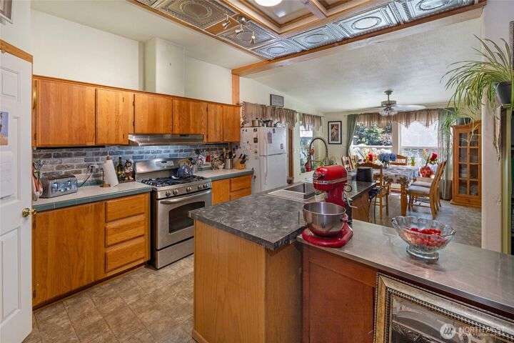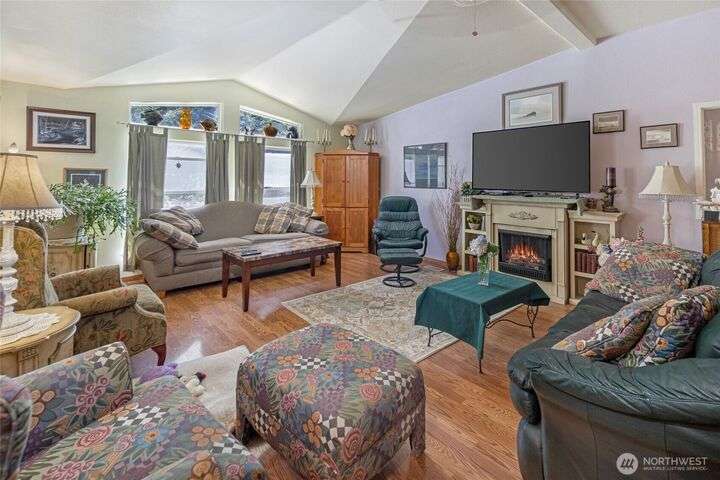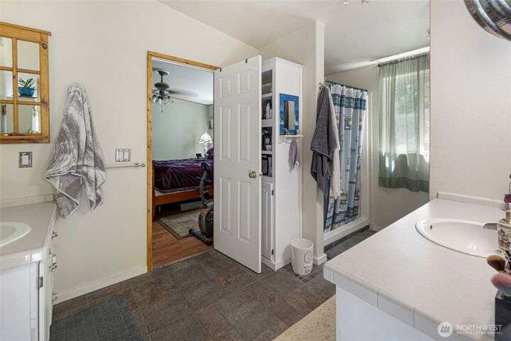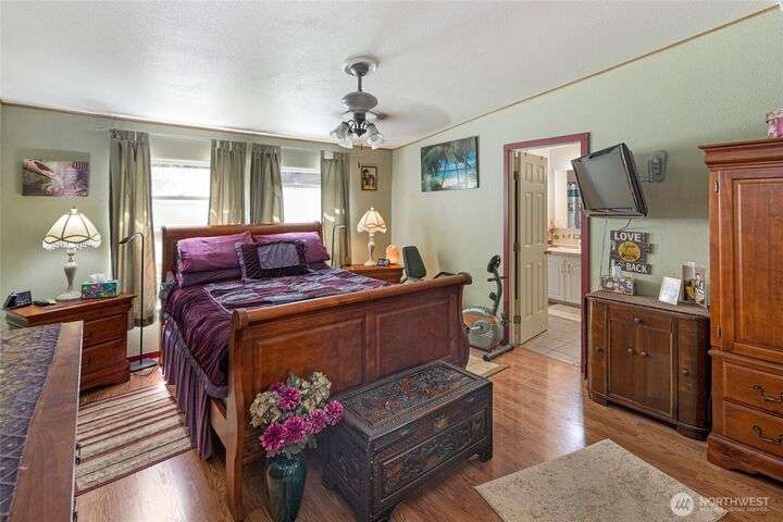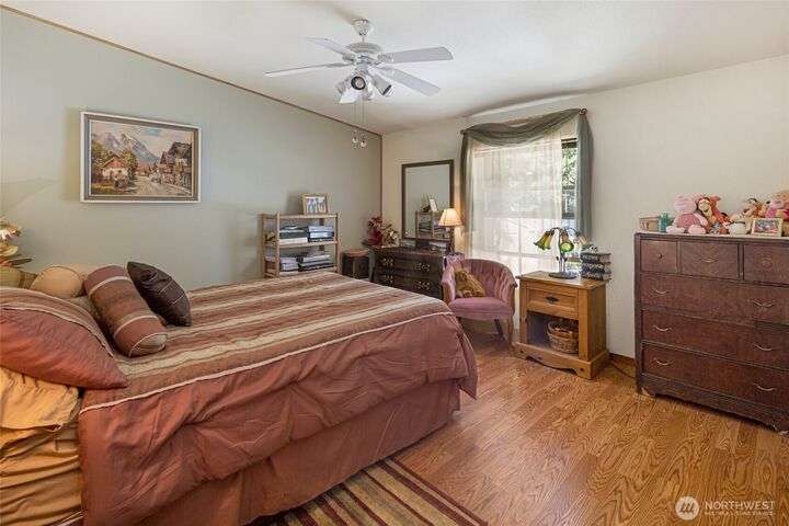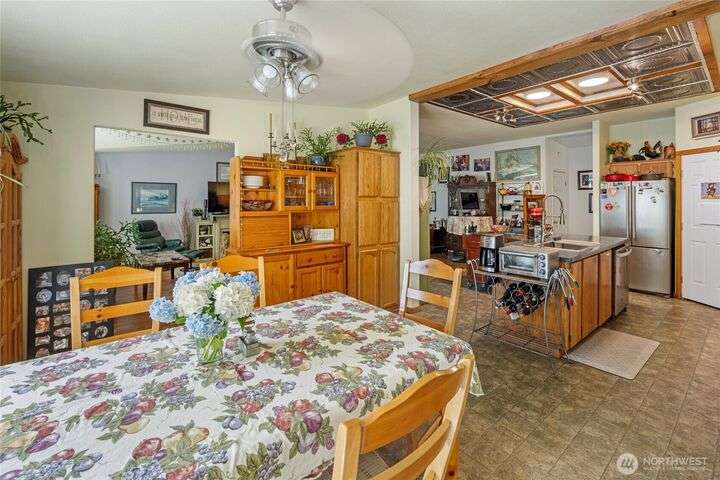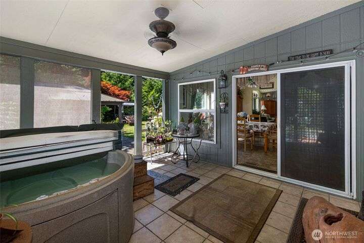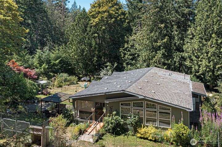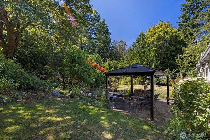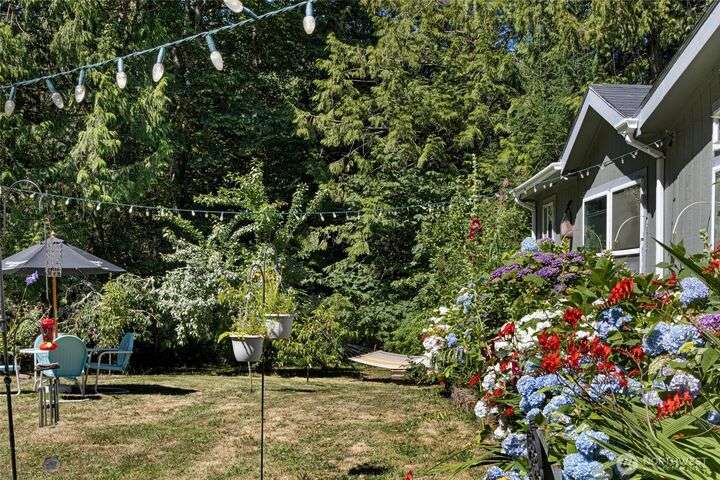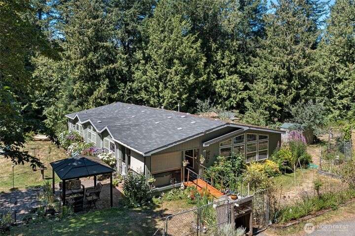 Private oasis near world class Roche Harbor Resort. Stunningly beautiful flowers for every season, fruit trees, hops, old growth, raised bed veg gardens & more. The perfect amount of sun & shade. This triple wide manufactured home offers a spacious layout & attention to detail, providing a comfortable & stylish living space. With 2,479 sqft of living area, there is plenty of room for relaxation & entertainment inside & out! Features 4 bedrooms & 2 bathrooms, offering convenience & privacy & creating a warm & inviting atmosphere. Private deck off the primary. The kitchen is equipped with everything you need & ample storage space, making it a delight for any home cook. the perfect choice for those seeking a well-designed and comfortable home.