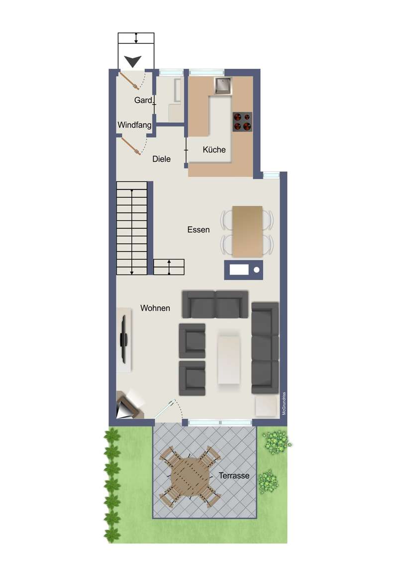 Your personal dream home will come true in this well-kept terraced house in a pleasant location in Sinsheim. Five rooms, spread over approx. 146m² of living space, offer you room for the family. Once you enter the house via a few steps, you first enter the hallway with a separate checkroom area. From here you enter the heart of the first floor: the spacious and open-plan living, cooking and dining area. In the spacious fitted kitchen, which is included in the purchase price, you can prepare meals together in the adjoining dining area. The living room offers a cozy atmosphere due to the warm colors and the large fireplace in the entire area, which invites you to relax after a long day at work. From here you have access to the outdoor area, where you can enjoy time with family and friends on the terrace on balmy summer evenings. The upper floor is reached via a timeless, open wooden staircase. Two rooms are available here, which you can furnish according to your needs as a bedroom, children's room or study. The shower room with natural light completes the floor plan on this level. A staircase leads to the top floor, where two further rooms, one of which has a loggia, extend the available space. In the basement of the house, which has a partial cellar, there is a boiler room, a hobby room and an additional area that can be converted into a second bathroom thanks to the installed water pipes. Two parking spaces round off the offer.