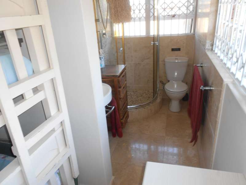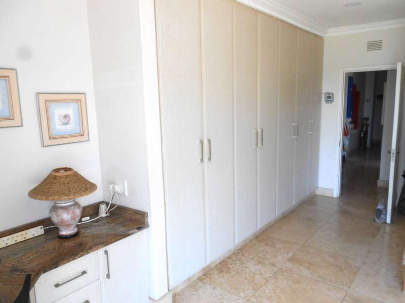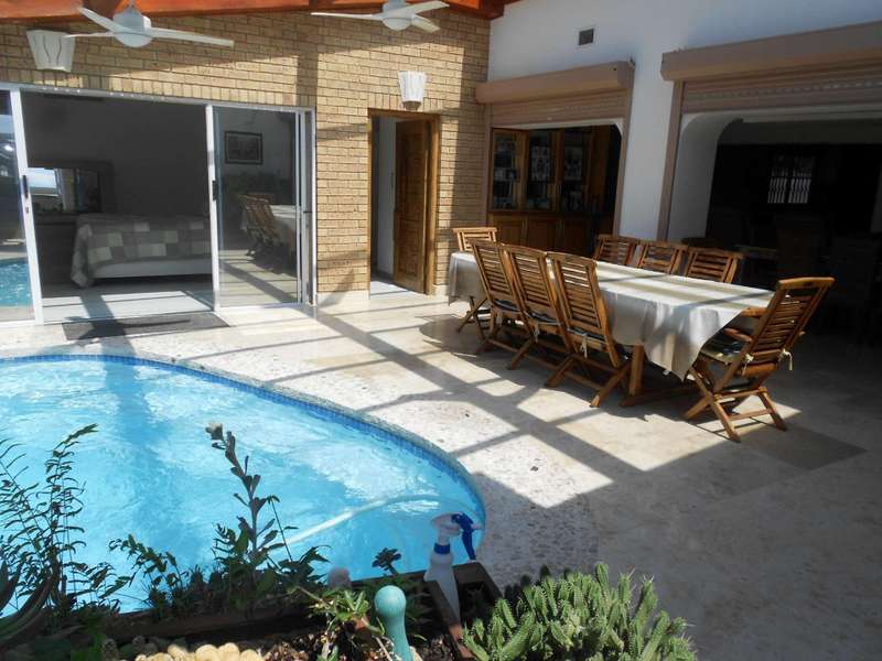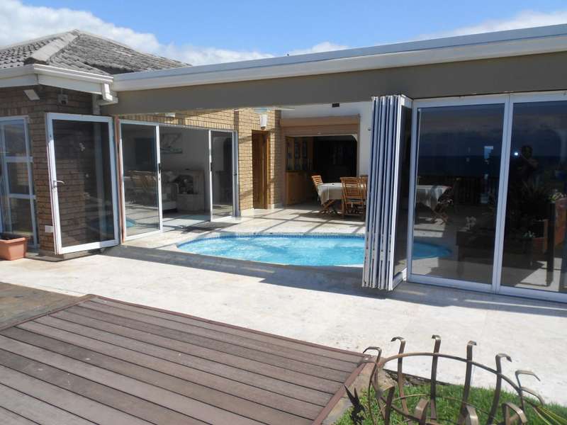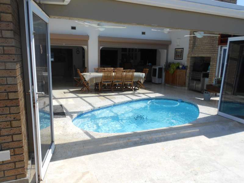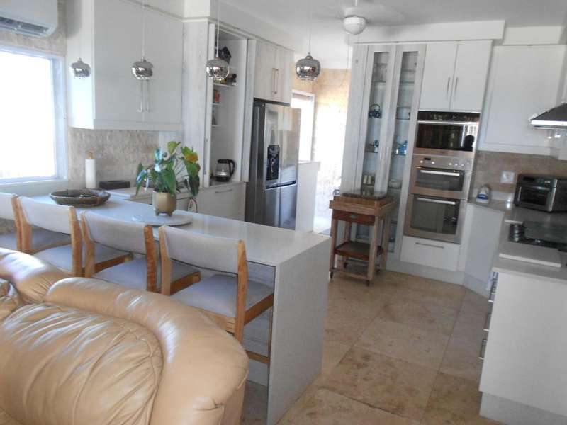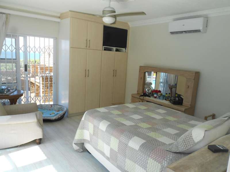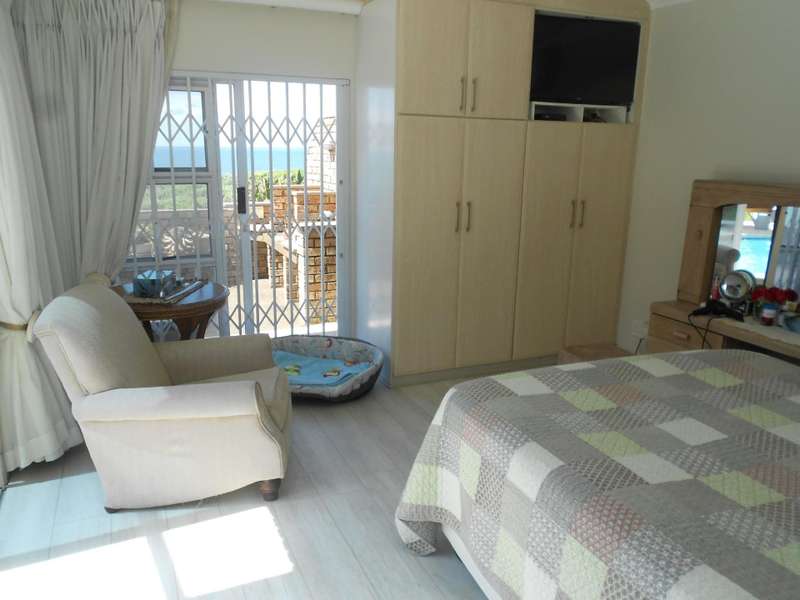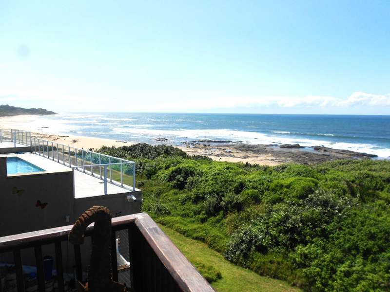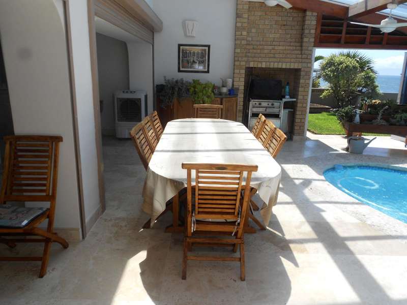 Class, luxury and elegance are the most descriptive words that come to mind when viewing this magnificent, free-hold property within a secure estate, situated in Shelly Beach, on the Hibiscus of Kzn. One of the most striking features are the beautifully carved wooden doors throughout the house and the rich wooden finishes in the reception bar area when entering the huge front door and the second bar area upstairs. This two level home, features five bedrooms and four bathrooms, three of which are on suite, an indoor pool, two dining areas, one for dinner indoors and the other for breakfast and lunch in the pool area. Breath-taking 180 degree sea views, beach and breaker views with private beach access. The only property in the estate with private, direct beach access.