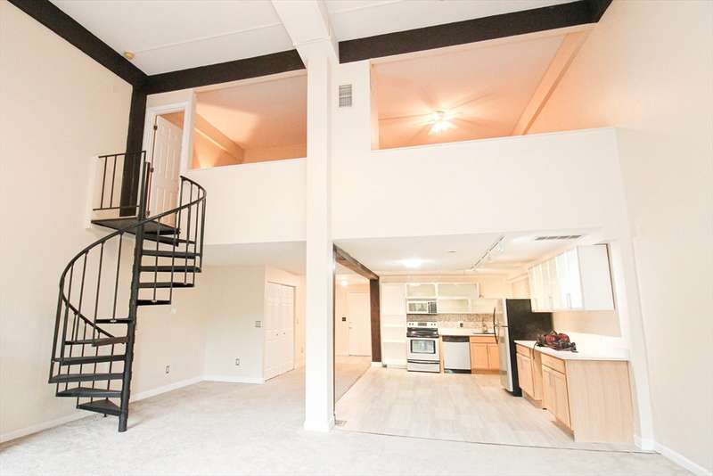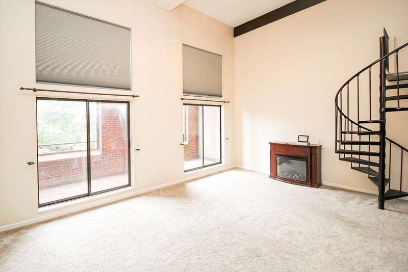 Industrial loft-style living at Riverbend! This top level condo offers dramatic high ceilings, oversized windows and sliders that flood the space with natural light, and an elegant spiral staircase that sets a tone. The renovated kitchen features new cabinets, fresh LVT flooring, stainless steel appliances, and a mosaic tile backsplash, perfectly complementing the open-concept design. Two generously sized bedrooms provide flexibility for guests or a home office, while the private balcony off the living room invites you to relax outdoors. Enjoy the comfort of central air conditioning, the community s inground pool, landscaped grounds, and scenic location along the Taunton River. Commuters will appreciate quick access to Rt 24, 44, 495, and being just a 10-minute ride to the South Coast Commuter Rail. A rare chance to own a stylish, updated home in a scenic, ultra-convenient setting! - And in a prime location within the building.
