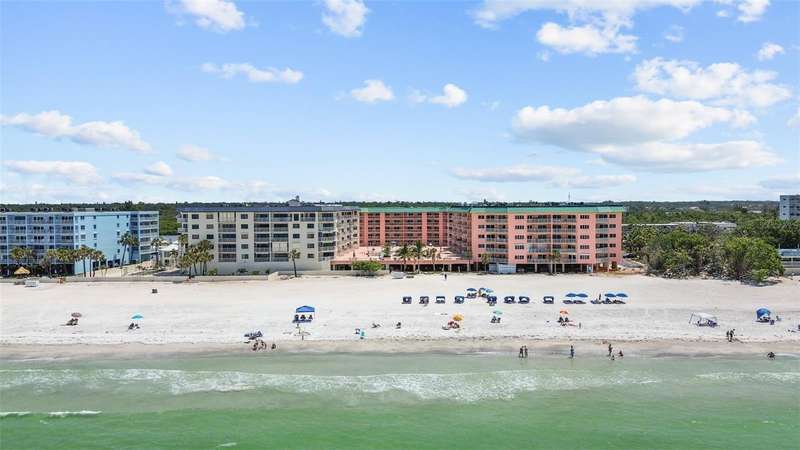 Turnkey Beachfront Luxury with Weekly Rental Income — Indian Shores Gem Wake up to the sound of waves and end every day with a breathtaking sunset over the Gulf of Mexico. This fully renovated, furnished 2-bedroom, 2-bathroom beachfront condo offers the ultimate blend of modern luxury, rental income potential, and coastal serenity — all in the heart of Indian Shores. Situated directly on the powdery white sands of the Gulf, this meticulously updated unit invites you to live the dream or cash in on it with high-demand weekly rentals. With forward bookings available and excellent rental income, this is both a smart investment and a stunning retreat. Step inside to discover contemporary coastal design with wood-look ceramic tile flooring, quartz countertops, soft-close cabinetry, and new stainless steel appliances. The open-concept kitchen, living, and dining area makes entertaining effortless — all set against a backdrop of spectacular Gulf views. A full-size washer and dryer adds convenience, while high-end furnishings complete the turn-key experience. The primary suite is a peaceful escape featuring slider access to the beachfront balcony, a large walk-in closet, and a spa-like ensuite with double vanities and granite countertops. The spacious guest bedroom and bath are perfect for family, guests, or working remotely — with split-bedroom layout ensuring privacy for all. Outside, enjoy a resort-style Gulf-front pool and spa, expansive sun deck with plenty of seating, gas grilling area, and direct beach access. The building is milestone complete and has had major updates including a new roof new appliances and more, ensuring peace of mind for years to come. Additional perks include secure building entry, under-building reserved parking, guest parking, bike racks, kayak storage, and even a car wash area. You'll also love the proximity to Clearwater, St. Pete, and Tampa International Airport — plus nearby shops, dining, and nightlife just minutes away. Whether you're looking for a personal beachfront escape or a high-performing investment, this condo checks every box. Sold furnished and turn-key—step in and start living (or renting!) the beach life today. Don’t miss this rare opportunity to own beachfront luxury with proven income in a prime location. Schedule your private showing now! Perfect for first time investors, families wanting a beach retreat, as well as 1031 exchange buyers.