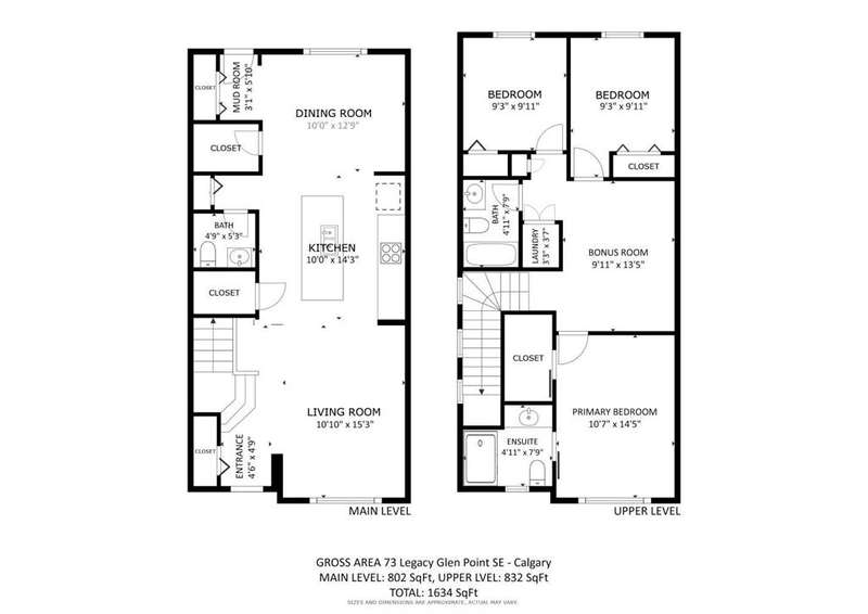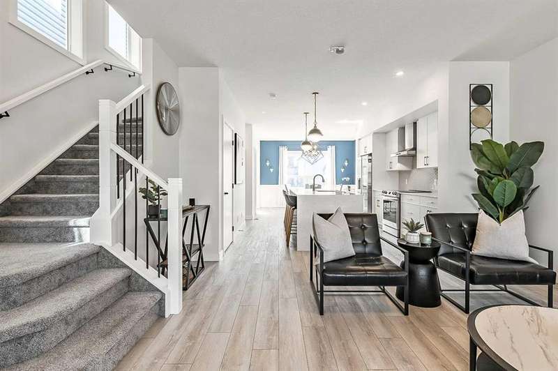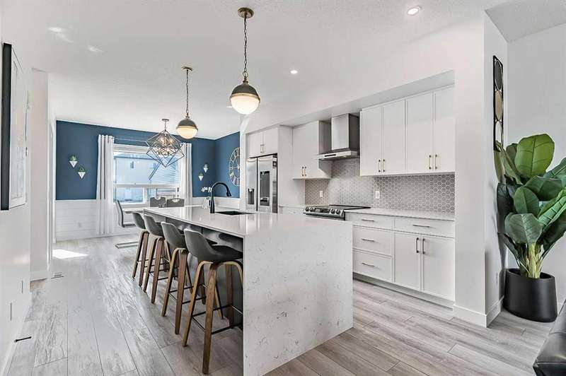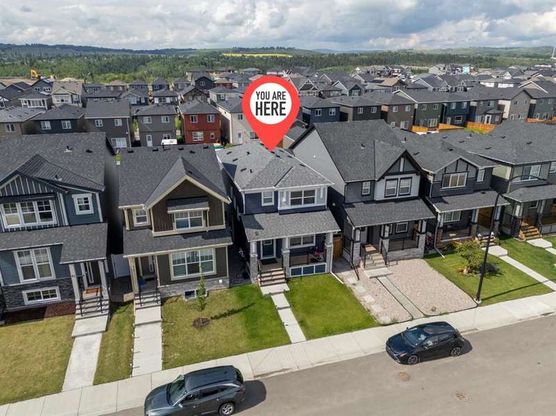 Stunning 3-bedroom, 3.5-bath detached home in Legacy, now featuring a BRAND-NEW, FULLY LEGAL BASEMENT SUITE — perfect for RENTAL INCOME or EXTENDED FAMILY LIVING. Offering 1,634 sqft of modern living space across the main and second floors, this home was built in 2022 and boasts numerous upgrades, including a beautifully designed KITCHEN WITH QUARTZ WATERFALL ISLAND, UPGRADED SAMSUNG APPLIANCES, TWO-TONE CABINETRY, a dedicated hood fan, and a built-in microwave. The open-concept main floor features a spacious dining and living area, perfect for entertaining. Upstairs, you’ll find three generous bedrooms, including a primary suite with a private ensuite, plus a versatile bonus room at the center. The home includes stylish upgrades like BLACK HARDWARE THROUGHOUT (door handles, hinges, faucets) and an UPGRADED LIGHTING PACKAGE. The home is also integrated with GOOGLE SMART HOME FEATURES. The FULLY LEGAL BASEMENT SUITE has been professionally developed with a PRIVATE SIDE ENTRANCE and includes a MODERN KITCHEN, SPACIOUS LIVING AREA, ONE BEDROOM, A DEN, 3-PIECE BATHROOM, and DEDICATED LAUNDRY — offering excellent potential as a MORTGAGE HELPER or separate living space. And don’t forget, you'll be living in Legacy, near Ponds, All Saints High School, Township Shopping Centre, playgrounds, and with easy access to McLeod Trail. Enjoy walking paths and nature views at the nearby environmental reserve, and a future elementary school.