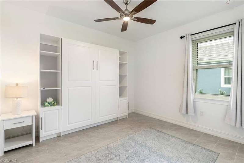 Welcome to this beautifully maintained 4-bedroom, 2-bath pool home offering a gorgeous lake view that creates a peaceful and scenic backdrop. Featuring the sought-after Delray floor plan, this residence boasts an open-concept living space that's ideal for both relaxing and entertaining.Step into a home filled with natural light and upgraded designer touches, including brand-new lighting fixtures and a thoughtfully enhanced kitchen. The kitchen showcases a neutral tile backsplash, a spacious walk-in pantry, soft-close cabinetry with smart pull-out drawers, and a hidden trash system for a clean, streamlined look.The bathrooms feature floor-to-ceiling tile and are meticulously maintained. The primary suite offers a peaceful retreat with two walk-in closets, a double vanity, and a large walk-in shower with multiple showerheads. One guest bedroom includes a versatile queen-sized Murphy bed, making it perfect for use as a home office. The other guest rooms are comfortably furnished with a king and a queen bed. The laundry room includes a utility sink, built-in cabinetry, and a brand-new washer and dryer.The two-car garage is outfitted with wall-mounted storage and bike racks for added convenience. Step outside to a private, screened-in lanai featuring a heated pool surrounded by lush, tropical plant walls and gorgeous views of the lake. An outdoor kitchen with adjustable sunshade shutters makes entertaining a breeze.This home is located in a gated, resort-style community offering incredible amenities. Cool off in the community pool, grab a bite at Latitudes Cafe, or enjoy drinks with neighbors at the Tiki Bar. Outdoor enthusiasts will love complimentary access to paddleboards, kayaks, canoes, and water bikes on Eagle Lake. Stay active with the fully equipped fitness center, bocce ball and beach volleyball courts, and the Match Point Complex featuring five tennis courts and four pickleball courts.This home blends luxury, comfort, and lifestyle - perfect for your next Florida getaway.The property is still available for December 2025 and will be available for an annual lease starting May 1, 2026.