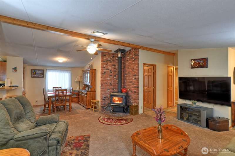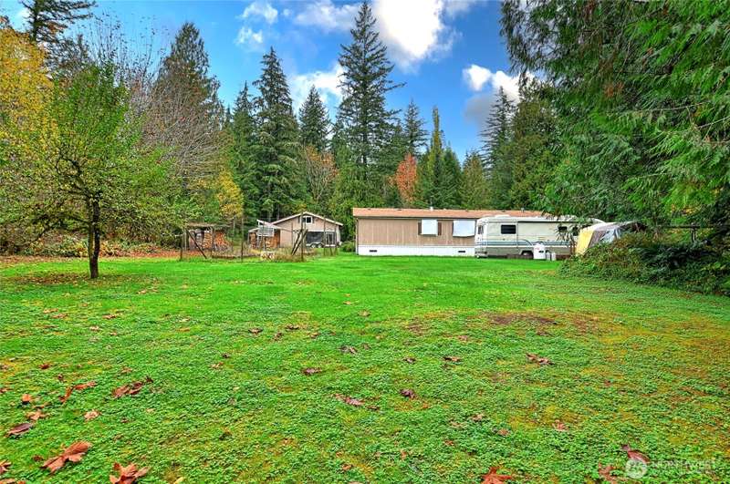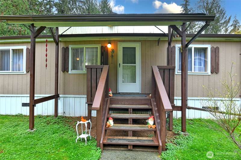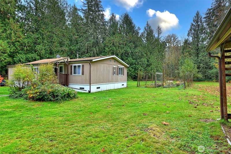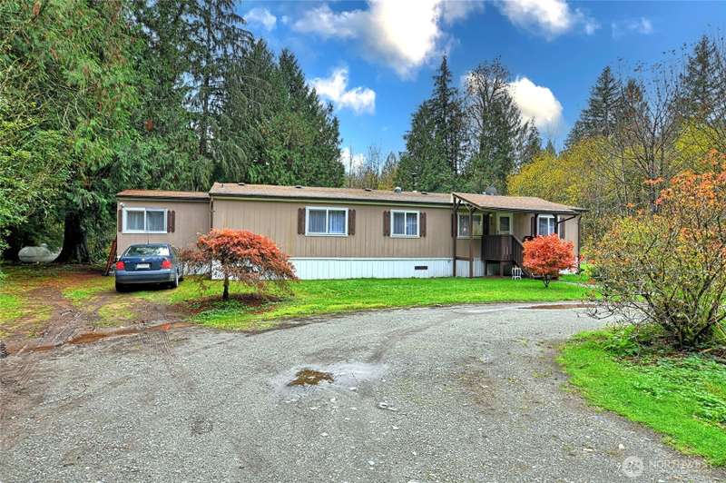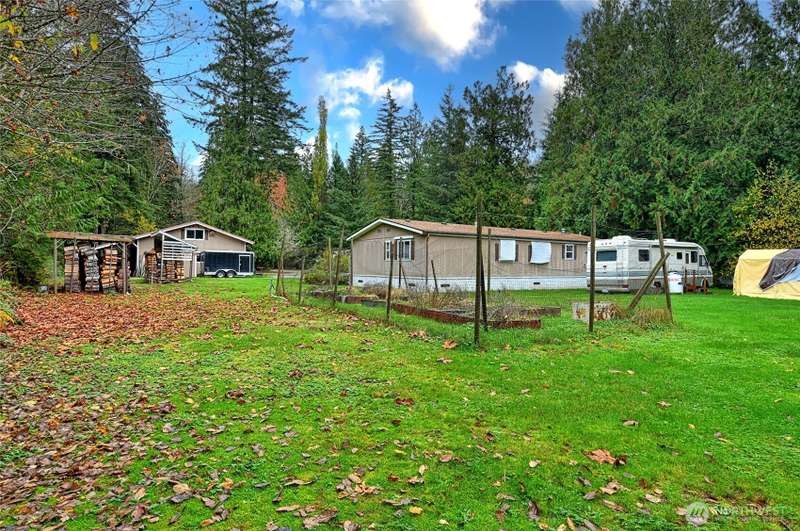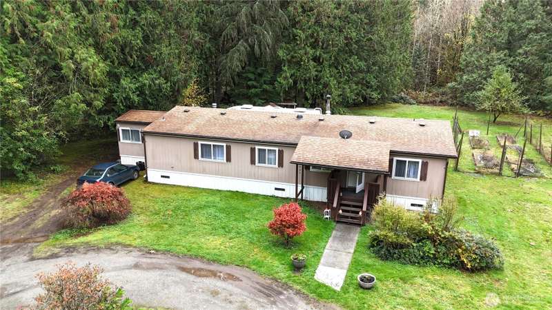 Tranquil, serene and stunning 2.73 acre property in the North Cascades to use however your heart desires. Original owner has taken amazing care with the home and land so it's all ready for the next buyer. Well-appointed 3 bedroom + office/2bath manufactured home is cozy and has tons of space. Vaulted ceilings, efficient wood stove, solid hickory cabinets and Brazilian pine doors. Primary has ensuite with jetted tub. Roof redone in 2020. Detached oversized garage with extra space for shop and storage. Lot is level and partially wooded, plenty of garden space. Property surrounded by 50+ acres of Skagit Land Trust so it won't be developed, and buyer can access Skagit River.