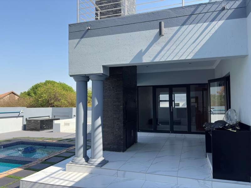 AVAILABLE IMMEDIATELY WELCOME TO A LIFE of unparalleled luxury within an exclusive golf estate. This magnificent 3-bedroom residence (2 bedrooms inside, 1 bedroom outside), designed with the most discerning homeowner in mind, offers a perfect blend of sophisticated living and natural beauty. Step inside to discover an interior finished to an exceptional standard, where every detail speaks of elegance. The open-plan living areas flow effortlessly out to a private outdoor oasis. Here, you'll find a sparkling swimming pool with a rejuvenating jacuzzi, perfect for unwinding after a day on the links. An integrated braai area and a charming boma create an ideal setting for both intimate family gatherings and grand entertaining under the stars. The home's practicality matches its beauty, featuring a double garage with a dedicated inverter system, ensuring uninterrupted power. A state-of-the-art purified water system provides clean, pristine water throughout the house. This is more than a home; it's a statement of a truly extraordinary lifestyle. Only ground level available for rental, with your own private entrance.