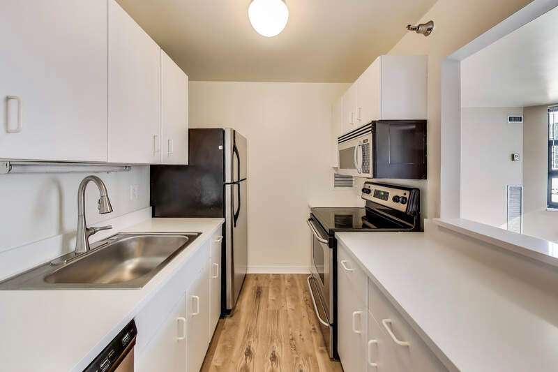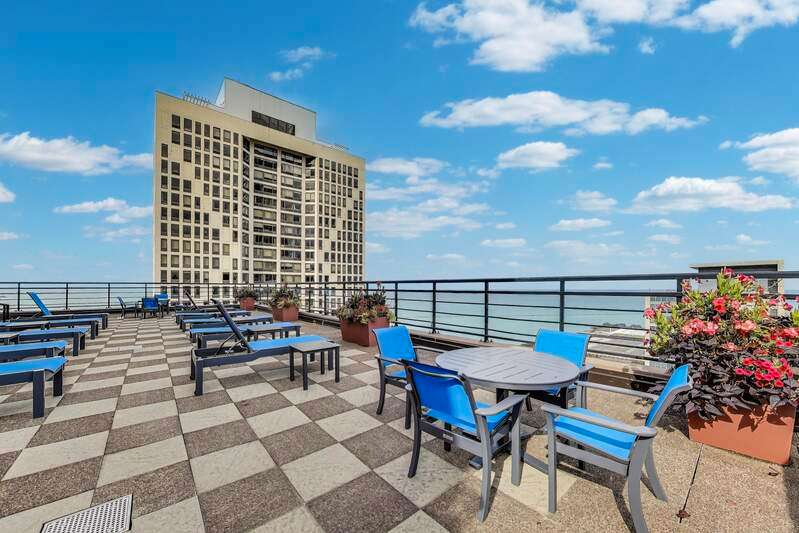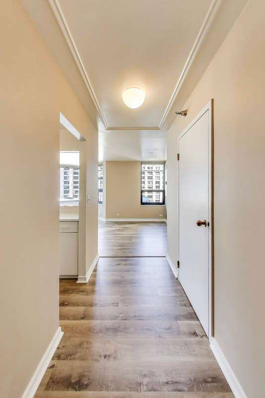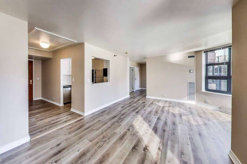 Beautifully updated 1 Bedroom condo in a popular full-amenity building with parking included! This home features all new luxury vinyl plank flooring throughout, brand new quartz countertops in the kitchen, and a fully remodeled bathroom with new tile, vanity, mirror, lighting, hardware, and toilet. The spacious living room boasts a large bay window that fills the unit with natural light, while the separate bedroom with a door offers privacy and comfort. Two oversized walk-in closets provide excellent storage. Residents enjoy resort-style amenities including an indoor pool, fully equipped fitness center, jacuzzi, sauna, two sundecks, and a party room.