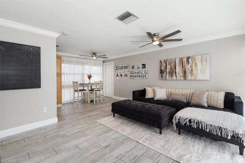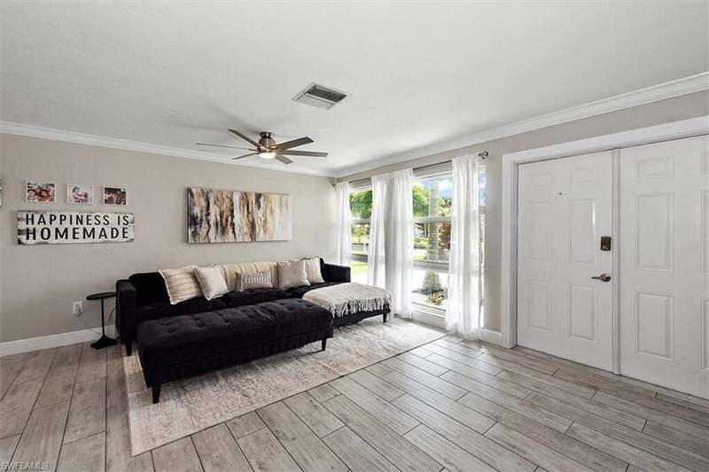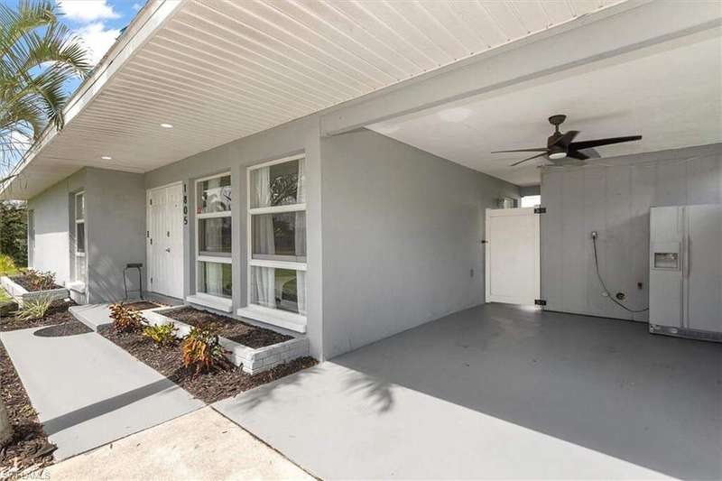 Fully remodeled home in a prime location on Cornwallis Parkway! Hurricane-impact windows on every opening, newer plumbing, updated electrical, and fresh interior/exterior paint. Bathrooms fully gutted and rebuilt with modern finishes. Crown molding throughout. Roof in permitting-will be completed prior to closing. Spacious fenced backyard with fire pit, pop-up pool, and freshly painted carport. No flooding and low-cost flood insurance. Great location close to both bridges and less than 5 minutes to Downtown Cape Coral. Family-friendly street with community events and block parties. Move-in ready with all major updates complete!