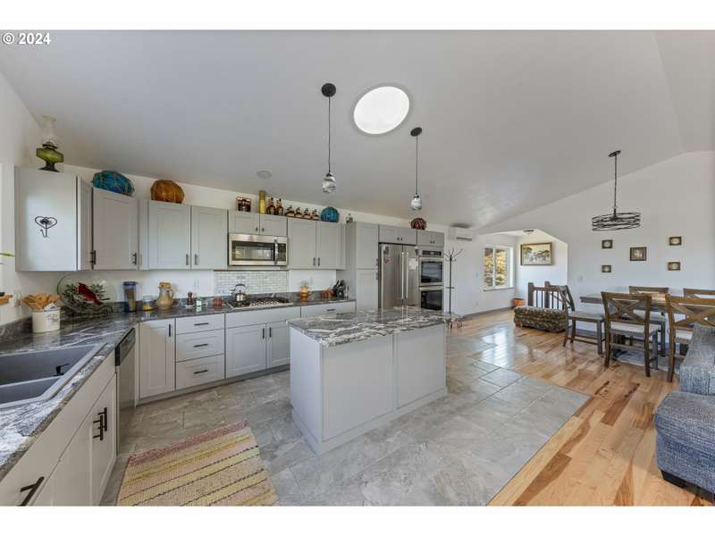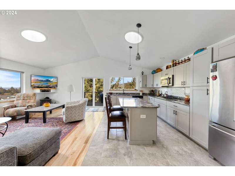 Welcome to your dream retreat! This exquisite custom single-family home, located in the highly sought-after Pacific City Heights, offers a distant peek of the Pacific Ocean and the dunes at Cape Kiwanda. This thoughtfully designed residence features 3 spacious bedrooms and 2 bathrooms, ensuring comfort and privacy for all. The main floor is designed for effortless living, showcasing two bedrooms and a convenient walk-in pantry. The open layout is highlighted by stunning hickory floors, creating a warm and inviting atmosphere. The modern kitchen is a chef's delight, featuring a propane cooktop and Italian porcelain tiles that enhance both beauty and functionality. Retreat to the serene upper level, where the primary bedroom suite awaits. Enjoy your own private haven, complete with an ensuite bathroom that promises relaxation and tranquility. This home is not only beautiful but also eco-friendly, boasting a class 4 roof and a tankless water heater. With three solar tube lights strategically placed throughout, natural light floods the home, creating a bright and cheerful ambiance. Nestled in a private setting, this home offers the perfect escape while still being close to local amenities. Experience the best of coastal living in a peaceful environment.