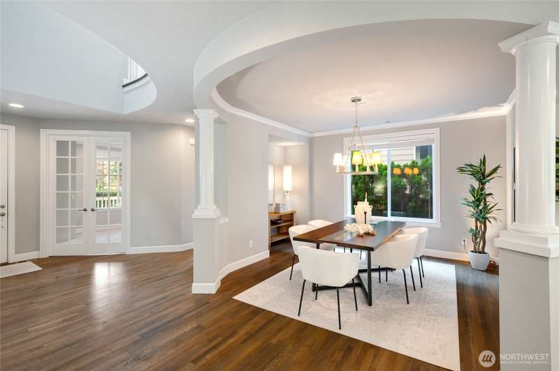 Dramatic moments unfold in this entertainer’s dream home in coveted Barrington Park. Nearly 4,000 sq ft of elevated design & effortless flow. Luxurious living spaces include a main-level guest bed & upstairs guest suite. Enjoy soaring ceilings, covered porch, architectural pillars, a wall of windows. Showstopping kitchen, one of the biggest you will see, w/bay window, oversized island, full-height bksplash, ample cabinetry, & an envious Working Pantry. Primary suite boasts a spa-like bath, skylight, tiled shower. Oversized laundry rm w/countertop.Luggage rm. A/C, covered deck,sprinkler sys. 3-car garage.Lake WA school & Samantha Smith Elem. Steps to parks & shops. A perfect blend of luxury, scale, & functionality. Exceptional at every turn!