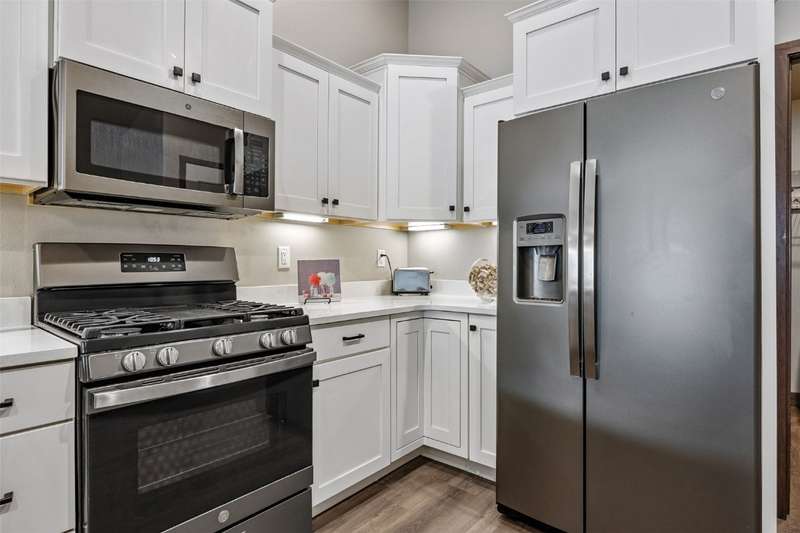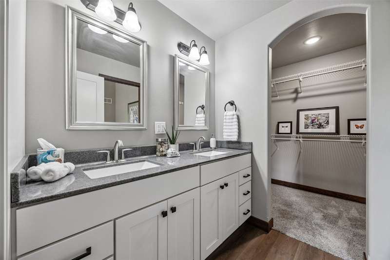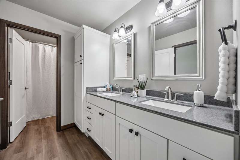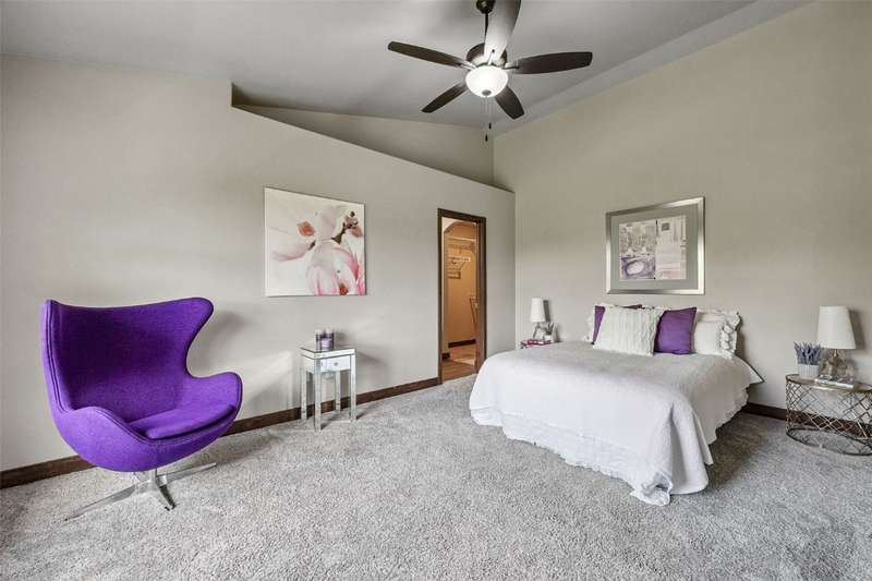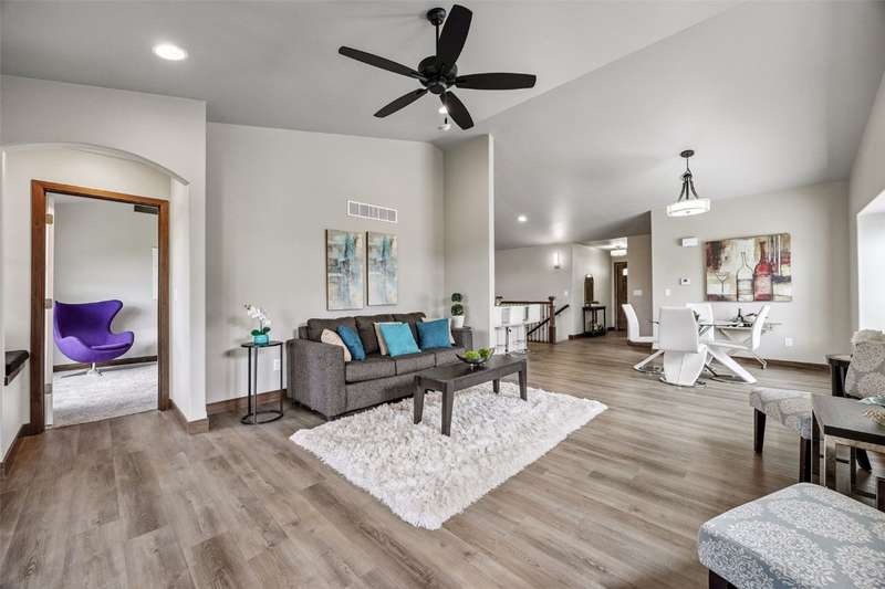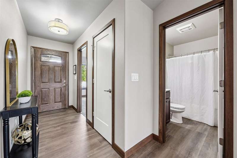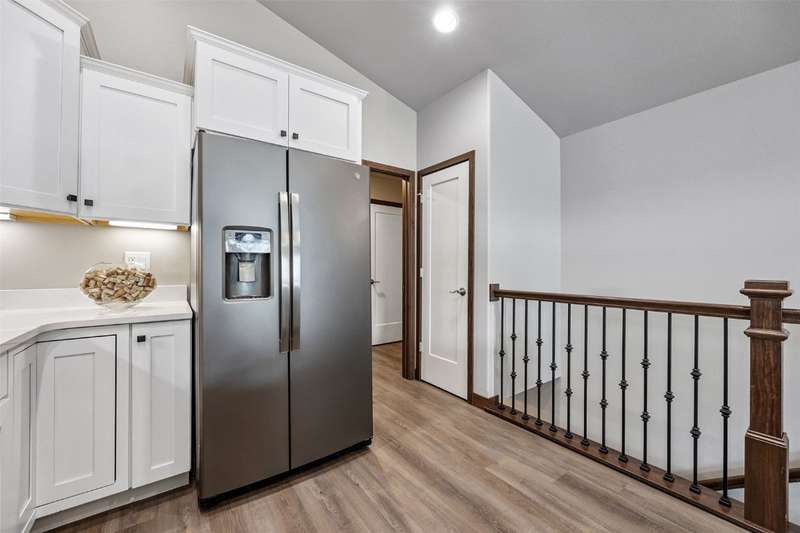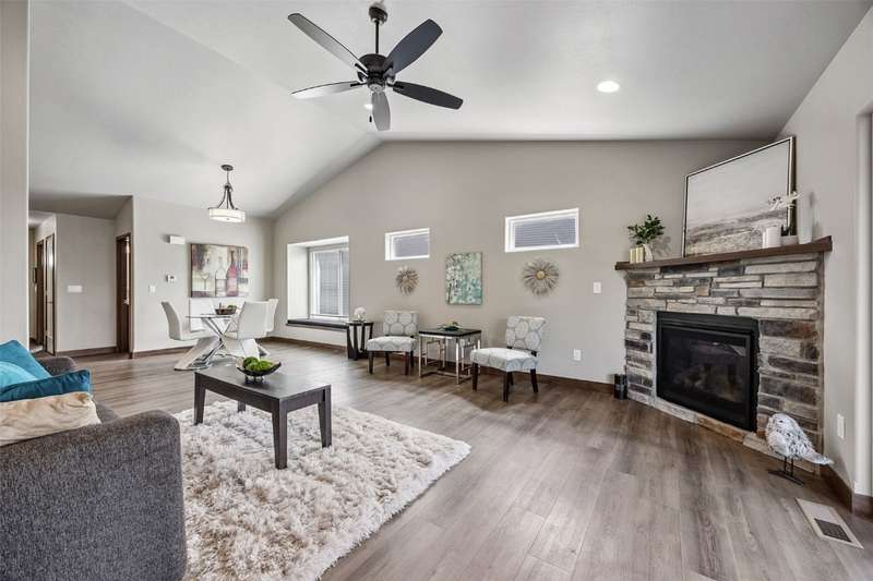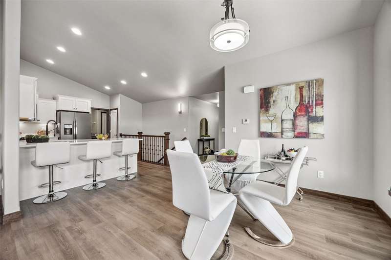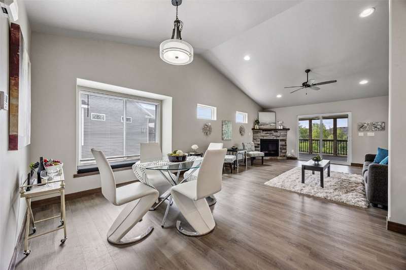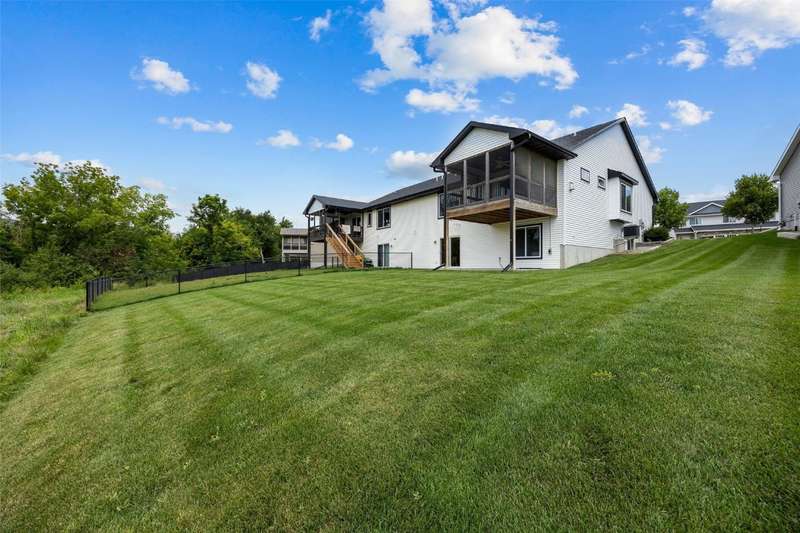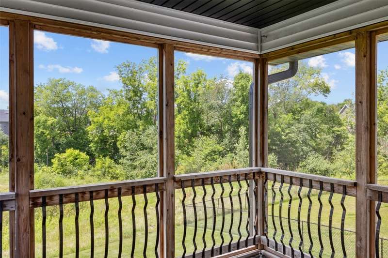 Modern style meets smart upgrades in this beautiful home. Vaulted ceilings and a gas fireplace create a warm, open main level. Step out from the living room to your screened porch—perfect for relaxing year-round. The kitchen features white cabinets, quartz counters, a breakfast bar, and pantry. The primary suite offers a private bath with dual sinks and a walk-in closet. Downstairs, the finished walkout lower level includes a 3rd bedroom, full bath, and spacious rec room leading to an extra-large patio—hot tub ready with wiring included! Enjoy a tree-lined backyard for privacy. Garage perks: floor sealant and built-in tool storage system.