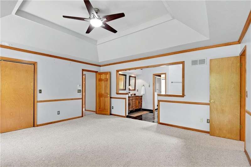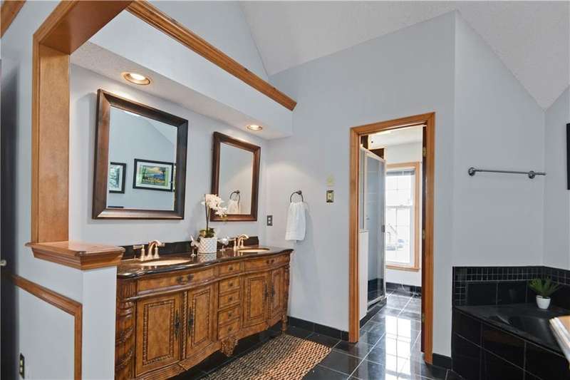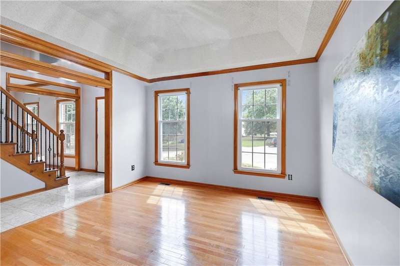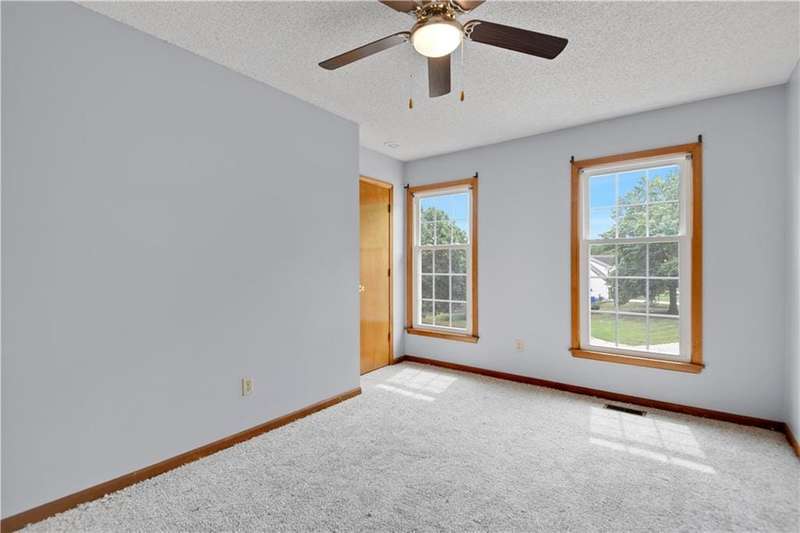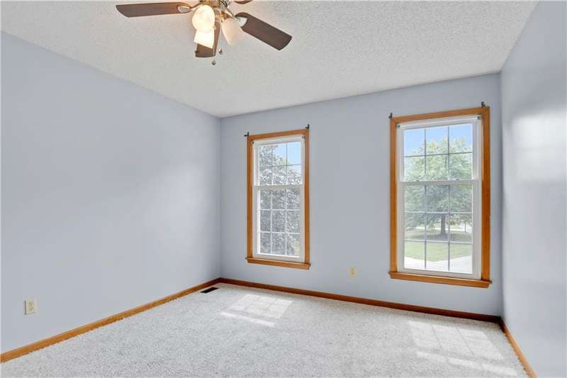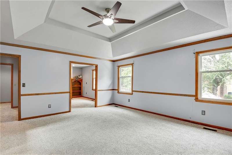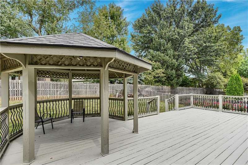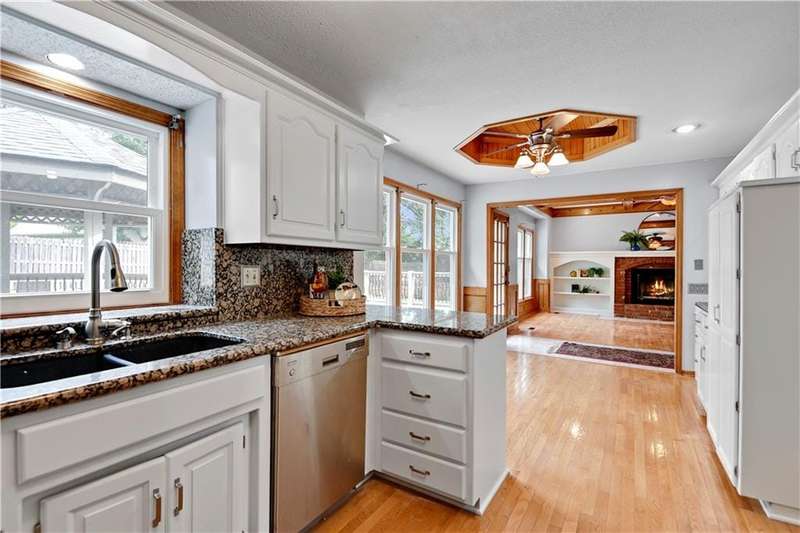 CHARMING 2-Story in The Cedars! Tucked away on a partial cul-de-sac in the heart of Lenexa, this beautifully maintained 5 bedroom (non conforming in basement), 3.5-bath home is truly move-in ready. NEWER WINDOWS, HVAC, ROOF, & CARPET! Step inside to find hardwood floors throughout the main level, a cozy fireplace with built-ins, and a wall of windows overlooking the huge backyard. The kitchen shines with freshly painted white cabinets, granite countertops, newer appliances, and a breakfast bar. An office and formal dining room complete the main level. Upstairs, the upgraded wood staircase with wrought iron spindles leads you to a huge primary suite featuring its own fireplace, sitting room & his/her closets one very large with room to expand further into attic. The spa-like bath offers a soaking tub, double vanities, and a separate shower area. Three additional bedrooms, a full bath with cathedral ceiling, brand-new carpet & convenient laundry room. The finished lower level is perfect for entertaining or relaxing, with a large family room with bar, full bath, 5th bedroom and abundant storage. Outside, enjoy the oversized deck with gazebo, additional patio space for grilling, and side parking for extra vehicles. Conveniently located near shopping, restaurants, parks, schools, and the local library. True pride of ownership in this beautiful home!
