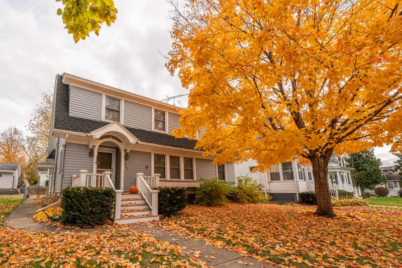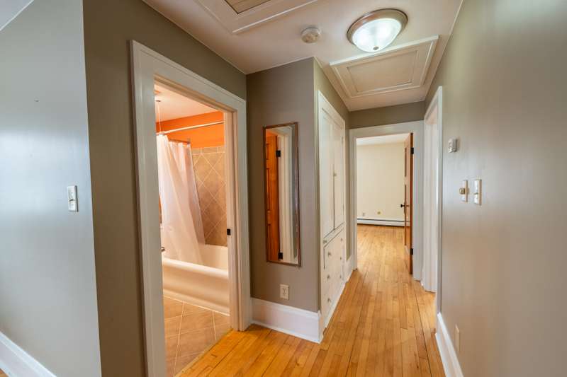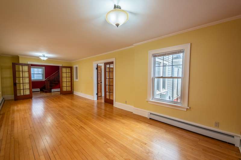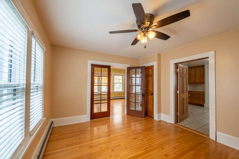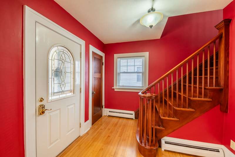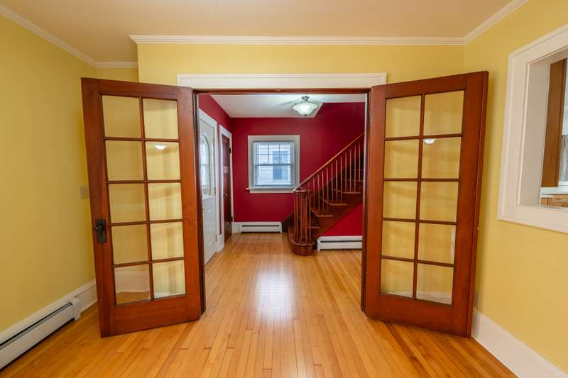 Nestled in the Richards Hill Historic District, this charming home is conveniently near schools and parks. From the moment you enter the foyer, you will notice the striking open staircase that sets the tone for the character throughout. Elegant French doors lead to a generous living and dining area adorned with original woodwork and hardwood floors. The spacious eat-in kitchen has been thoughtfully updated with stylish cabinetry, ample counter space, and vaulted ceilings that bring in an abundance of natural light. A back addition features a full bathroom and a large family room, ideal for both entertaining and downtime. Upstairs, you will find a main bedroom with a newly designed walk-in closet featuring custom shelving. Stay comfortable all year round with updated radiant heating, two ductless air conditioning units, and a whole-house fan. Outside, enjoy a large deck, a fenced yard, and a roomy, insulated, three-car garage. This home has been well maintained and is sure to impress.