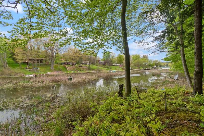 WELCOME TO PORT BAY!! SITTING A WAYS OFF THE ROAD AND SURROUNDED BY TREES. WATERFRONT PROPERTY WITH DOCK!! THIS LITTLE SECLUDED A- FRAME COTTAGE IS GREAT FOR WEEKEND GETAWAYS, SUMMER VACATIONS OR COULD BE USED AS AIR B&B OR MAYBE YEAROUND!!! TWO BEDROOM ONE BATHROOM. COZY LIVINGROOM WITH SPIRIAL STAIRCASE. IF YOU LIKE FISHING, BOATING, KAYAKING, OR JUST RELAXING BY THE WATER THIS ONE IS FOR YOU!!! MINUTES FROM PORT BAY GOLF COURSE, NOT FAR FROM FAIR HAVEN OR SODUS BAY!!!