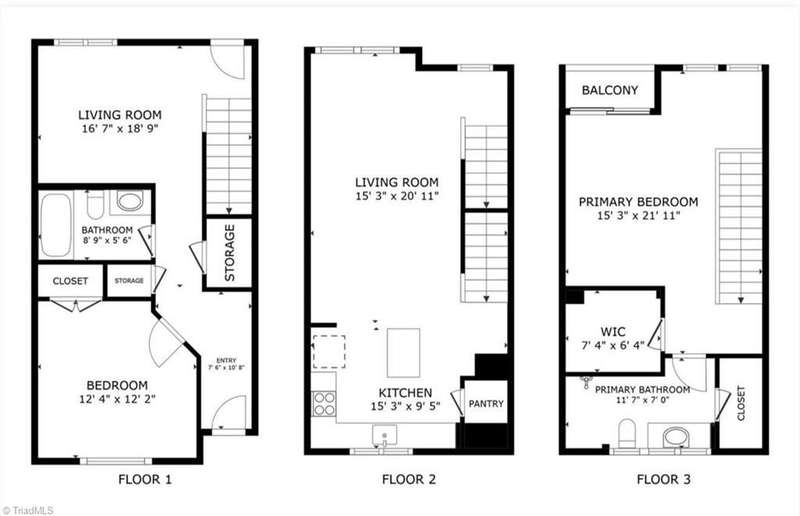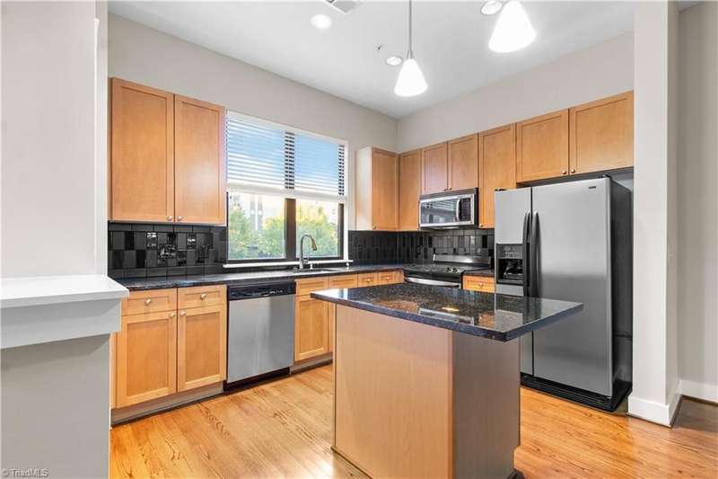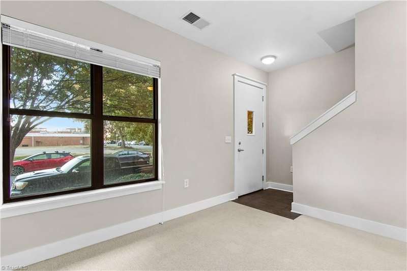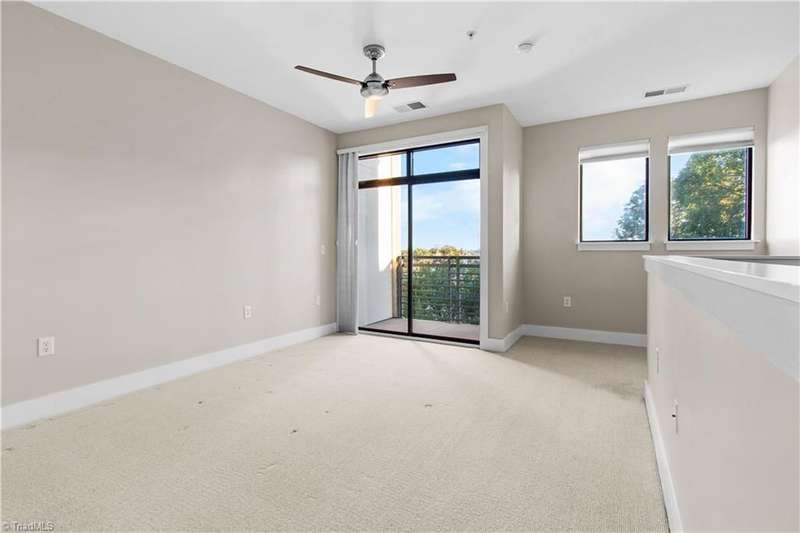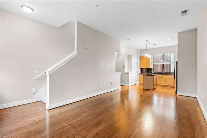 Fabulous find in downtown! Split living set-up with primary on upper level, living/dining/kitchen in the middle, 2nd bedroom, full bath and flex space on the main/entry level. Murphy bed to remain! Beautifully maintained, with fresh paint and refinished wood floors in the living / dining (great room). Walk to restaurants & entertainment, watch the fireworks from the ballpark from your private balcony. Come see what low maintenance living in a vibrant downtown is like!