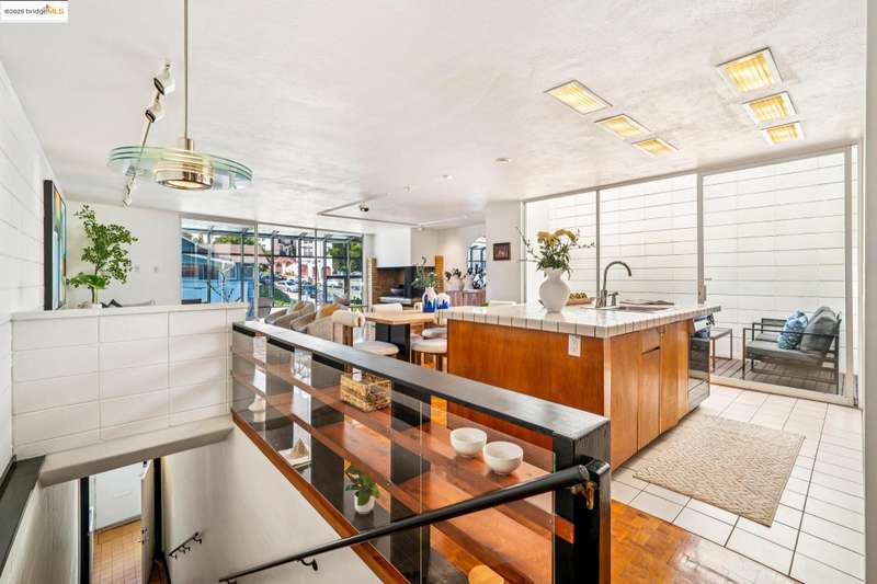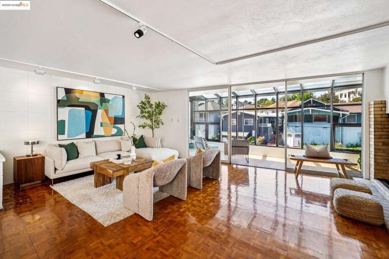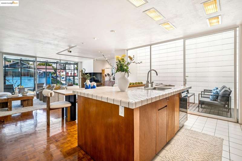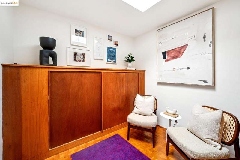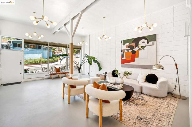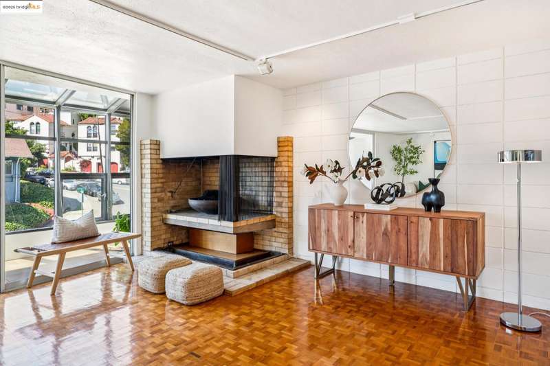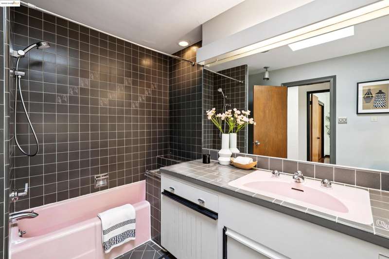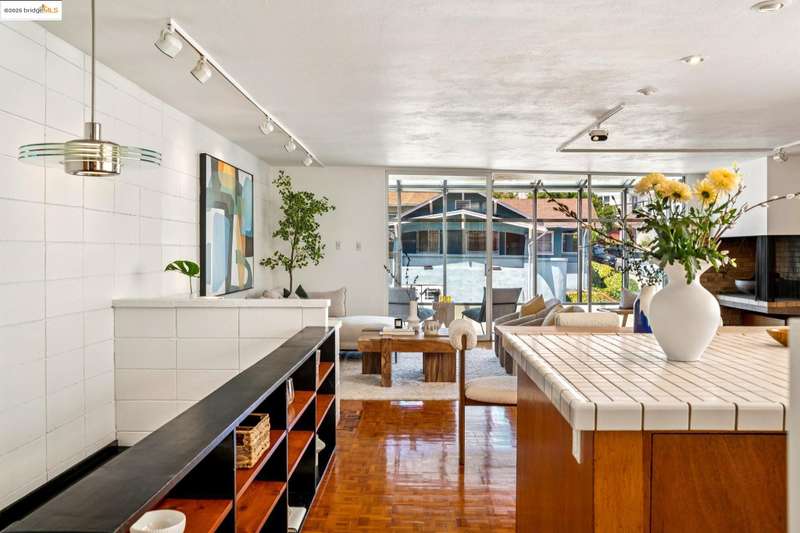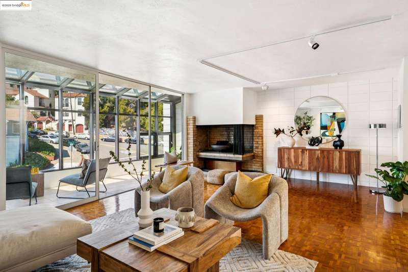 A truly distinct Mid-Century structure – stunning, multi-functional and located in Oakland's Cleveland Heights neighborhood. Awash with natural light from every room. Home consists of a level in-studio space and a separate living area. On the studio level with 1/2 bath (roughly 800 SQF) there is a large bank of new windows that infuse sunlight into a grand open area. This is an ideal spot for true creativity to flourish. Studio level connects to the main living area via wood stairs. On this upper floor, 3 bedrooms and 2 baths exist with gorgeous parquet wood flooring. The open floor plan is punctuated by a glass atrium, a fireplace, and a separate patio connected to the kitchen. Bask in the efficiency of late 50s design, where everything in the kitchen is where it should be. Vertical grain wood panel doors on the cabinets mixes with classic square tile. The dining area is ample enough to host both large gatherings. All 3 bedrooms are well-sized and have ample closet space. The large bath has a shower over tub and quintessential tile colors. The primary bedroom has an ensuite bathroom that is to die for. The primary and the third bedroom both have access to the outside back patio. This little private oasis gets lovely light and is a wonderful place for dining. A must see home!