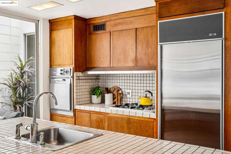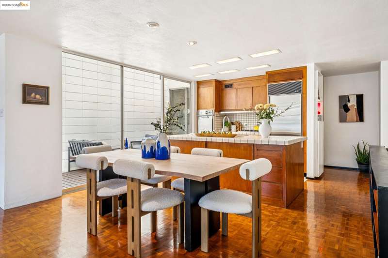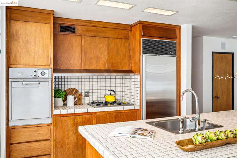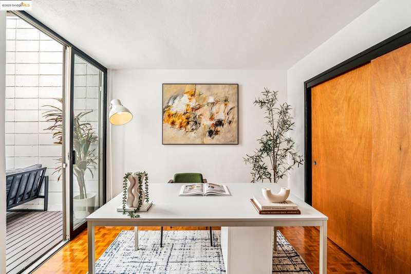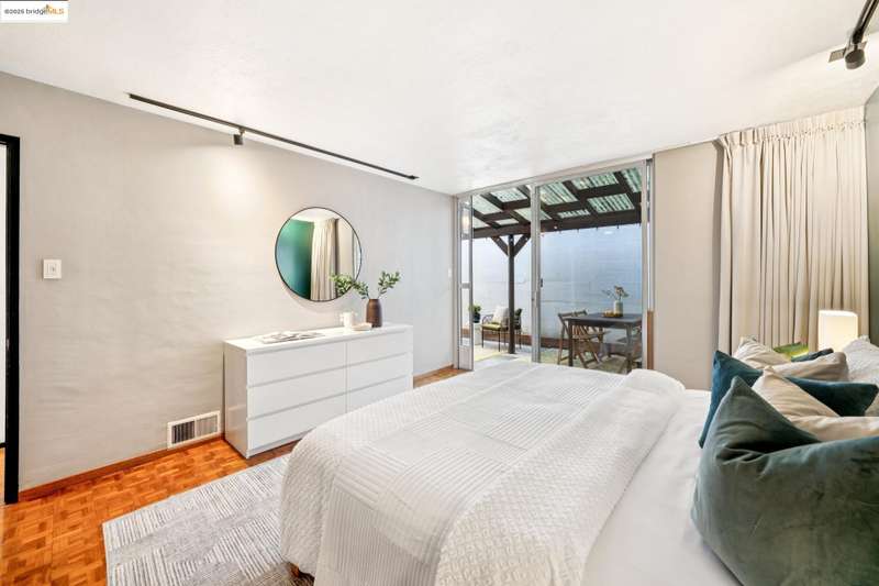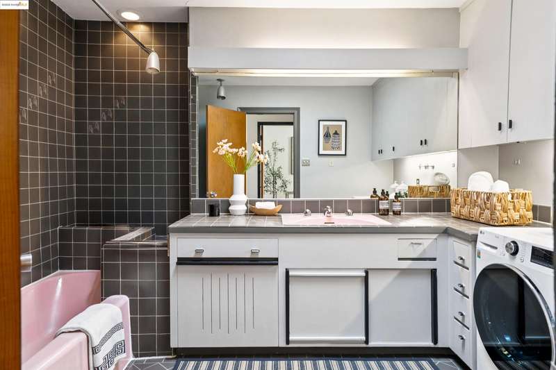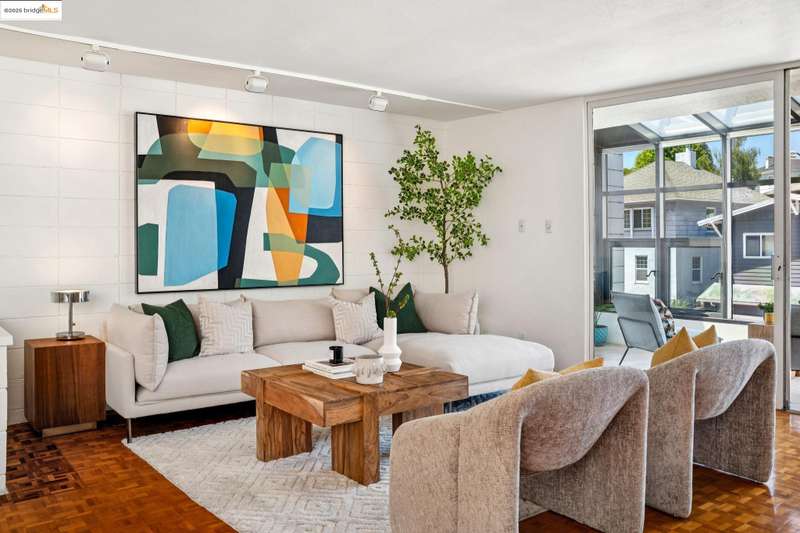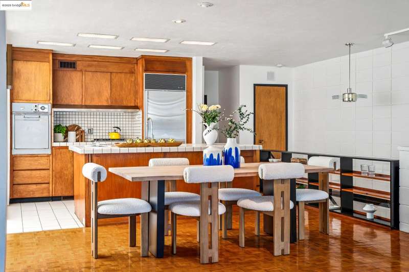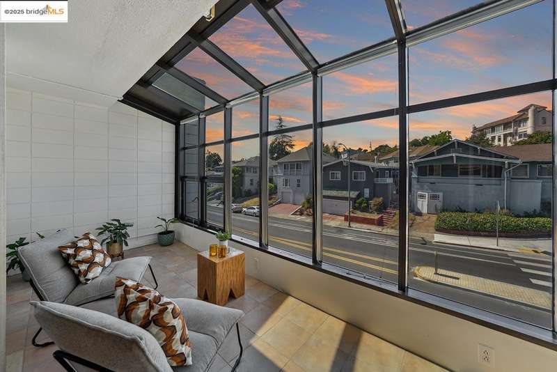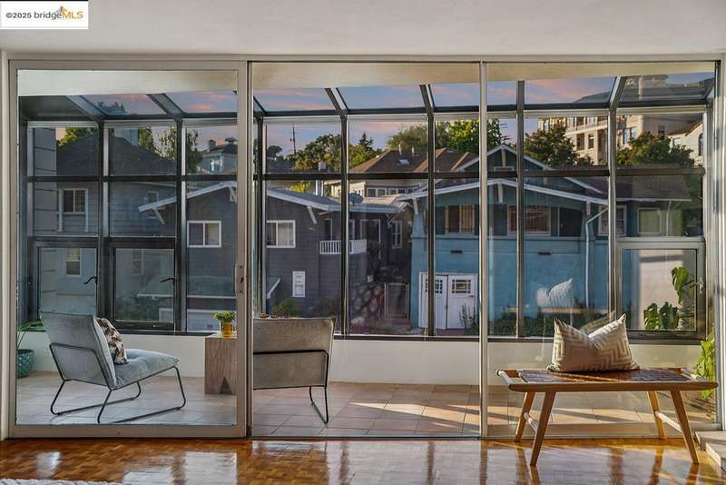 A truly distinct Mid-Century structure – stunning, multi-functional and located in Oakland's Cleveland Heights neighborhood. Awash with natural light from every room. Home consists of a level in-studio space and a separate living area. On the studio level with 1/2 bath (roughly 800 SQF) there is a large bank of new windows that infuse sunlight into a grand open area. This is an ideal spot for true creativity to flourish. Studio level connects to the main living area via wood stairs. On this upper floor, 3 bedrooms and 2 baths exist with gorgeous parquet wood flooring. The open floor plan is punctuated by a glass atrium, a fireplace, and a separate patio connected to the kitchen. Bask in the efficiency of late 50s design, where everything in the kitchen is where it should be. Vertical grain wood panel doors on the cabinets mixes with classic square tile. The dining area is ample enough to host both large gatherings. All 3 bedrooms are well-sized and have ample closet space. The large bath has a shower over tub and quintessential tile colors. The primary bedroom has an ensuite bathroom that is to die for. The primary and the third bedroom both have access to the outside back patio. This little private oasis gets lovely light and is a wonderful place for dining. A must see home!