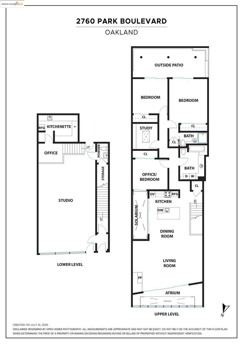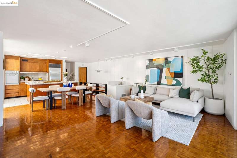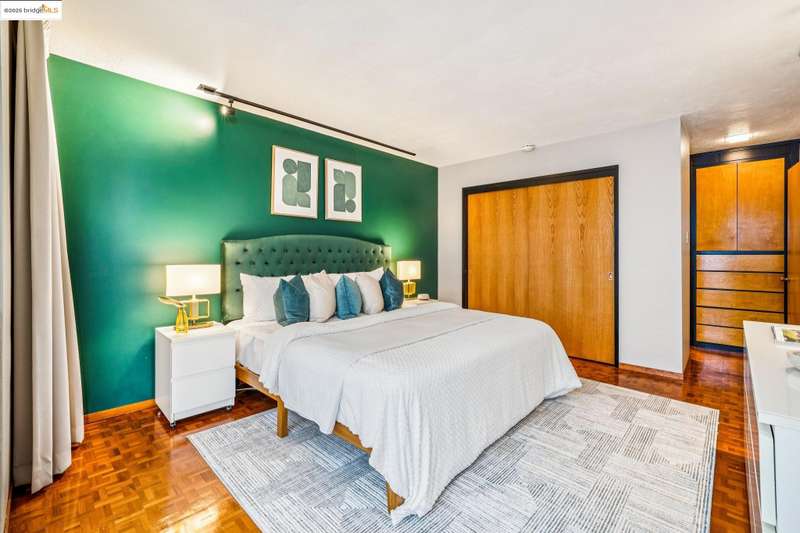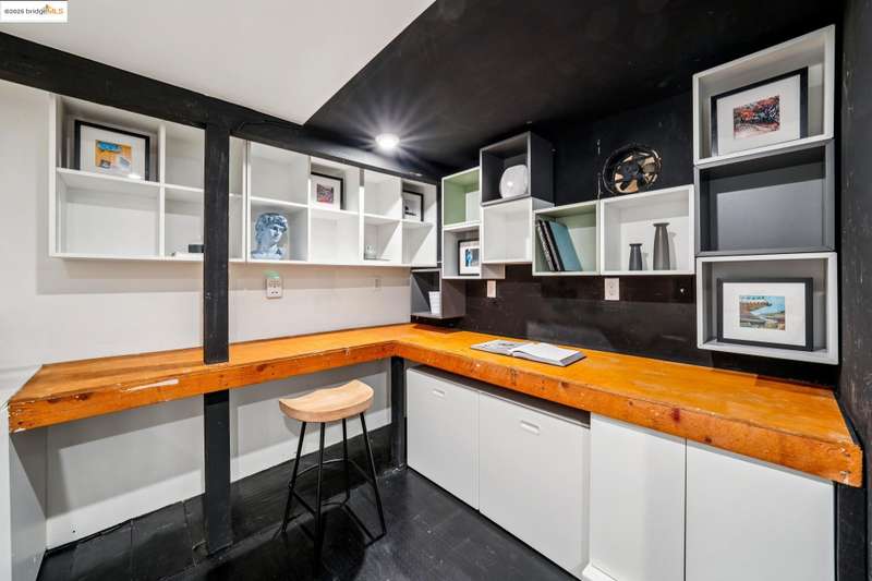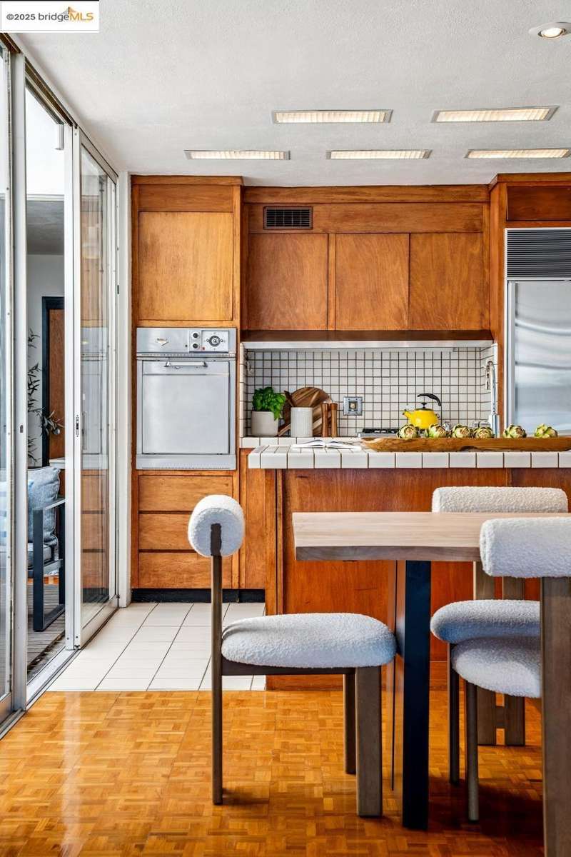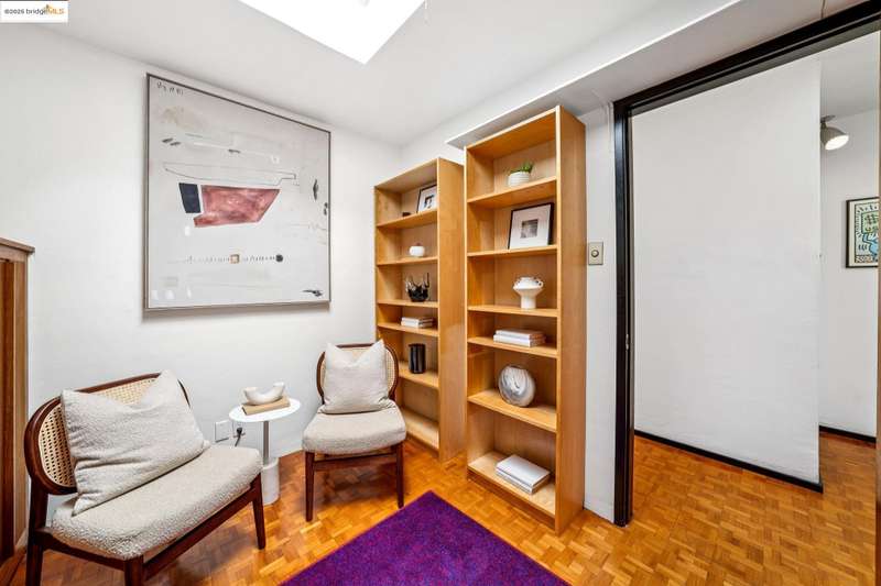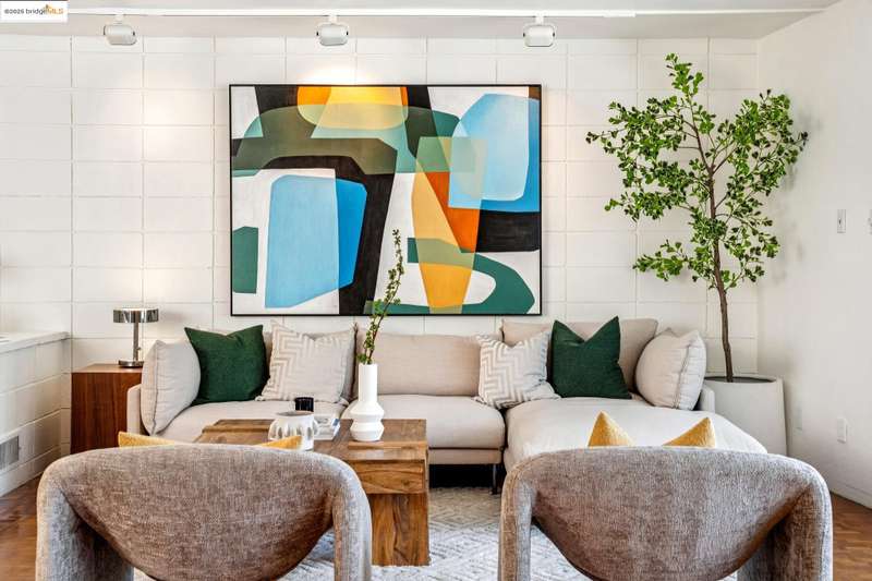 A truly distinct Mid-Century structure – stunning, multi-functional and located in Oakland's Cleveland Heights neighborhood. Awash with natural light from every room. Home consists of a level in-studio space and a separate living area. On the studio level with 1/2 bath (roughly 800 SQF) there is a large bank of new windows that infuse sunlight into a grand open area. This is an ideal spot for true creativity to flourish. Studio level connects to the main living area via wood stairs. On this upper floor, 3 bedrooms and 2 baths exist with gorgeous parquet wood flooring. The open floor plan is punctuated by a glass atrium, a fireplace, and a separate patio connected to the kitchen. Bask in the efficiency of late 50s design, where everything in the kitchen is where it should be. Vertical grain wood panel doors on the cabinets mixes with classic square tile. The dining area is ample enough to host both large gatherings. All 3 bedrooms are well-sized and have ample closet space. The large bath has a shower over tub and quintessential tile colors. The primary bedroom has an ensuite bathroom that is to die for. The primary and the third bedroom both have access to the outside back patio. This little private oasis gets lovely light and is a wonderful place for dining. A must see home!