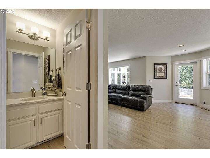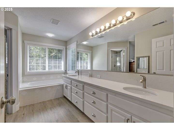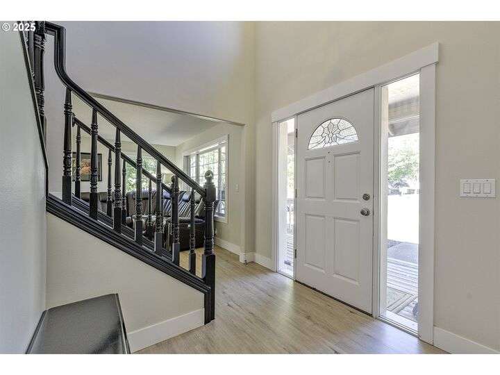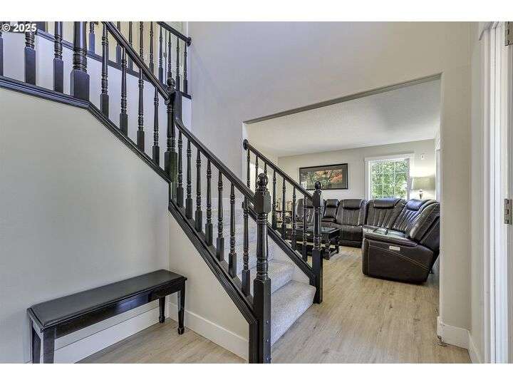 Your backyard is a greenspace setting in Sunburst Meadows on large corner lot. This 4 bedroom, 2.1 bath home features a large covered front porch, hardwood entry with vaulted stairwell. Large kitchen with lots of cabinet and counter space, SS appliances, island, pantry and nook. Large bonus on main level, primary suite with jetted tub, walk-in closet, double sinks and A/C. [Home Energy Score = 4. HES Report at https://rpt.greenbuildingregistry.com/hes/OR10241371]