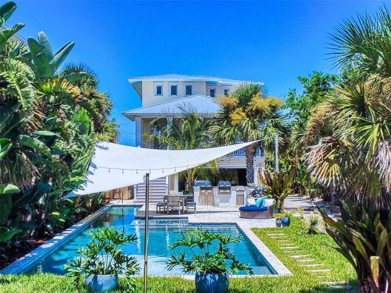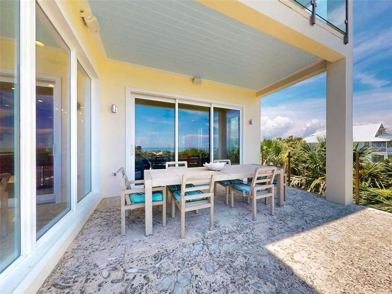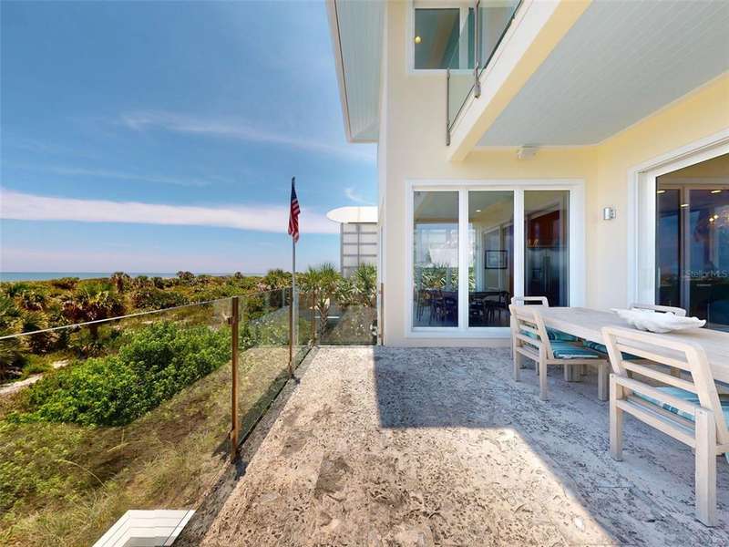 An exceptional rental opportunity awaits with this breathtaking 4-bedroom, 3.5 bath beachfront retreat—complete with a private dune walk to the ocean. Luxury defines every inch of this stunning multi-level pool home, offering panoramic views of the sparkling Atlantic Ocean. Newly built in 2017 and impeccably designed from top to bottom, this resort-style residence blends elegance with comfort. Outside, enjoy a full outdoor kitchen overlooking a custom coquina stone pool deck—perfect for dining, lounging, or simply floating your cares away. Just steps away, the second-floor wraparound balcony invites you to soak in the ocean breeze. Inside, every floor features its own balcony, starting with the first level that includes two spacious bedrooms and a full bath. The second floor opens to a vast living area, a chef’s dream kitchen, and a separate dining room—all with ocean views and direct access to the balcony. A 3rd bedroom with full bath and full utility room with porch access adds convenience to this level. The top floor is dedicated to the Owner’s Suite, where birds-eye views of the ocean meet the warmth of a cozy gas fireplace. This elegant space includes a private balcony and an adjoining area ideal for a home office, personal gym, or studio. The expansive bath features double sinks, a garden tub, walk-in shower, and separate water closet, while the custom California-style walk-in closet completes the suite. With every modern convenience, an oversized two-car garage, and endless spaces for entertaining or unwinding, this home is just a salty breeze away from the sugar sands of New Smyrna Beach. Put the phone down, kick off your shoes, and let the ocean set the pace.